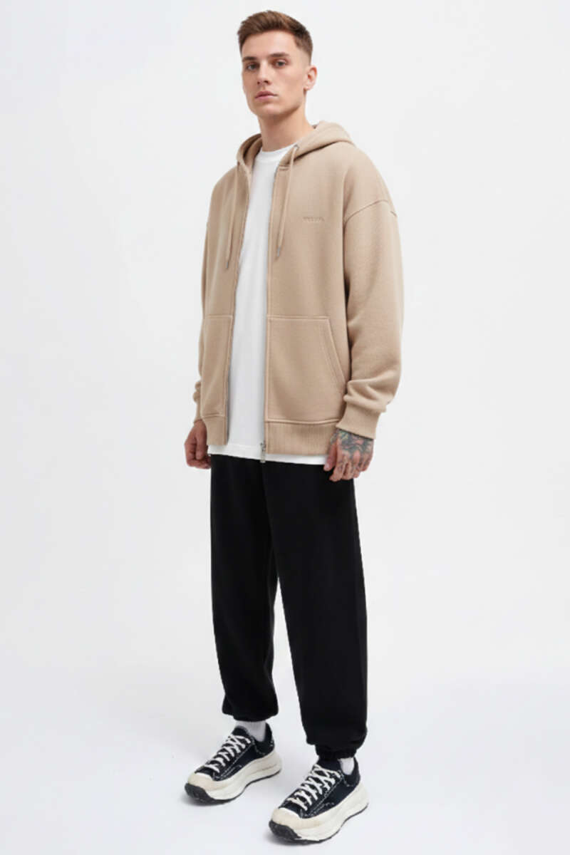 Fermuarlı Oversize Erkek Mevsimlik Hırka Bej