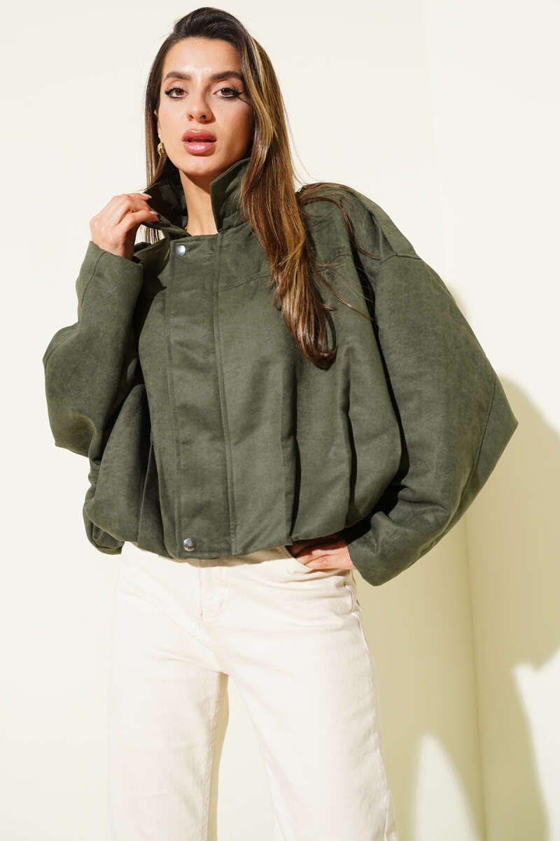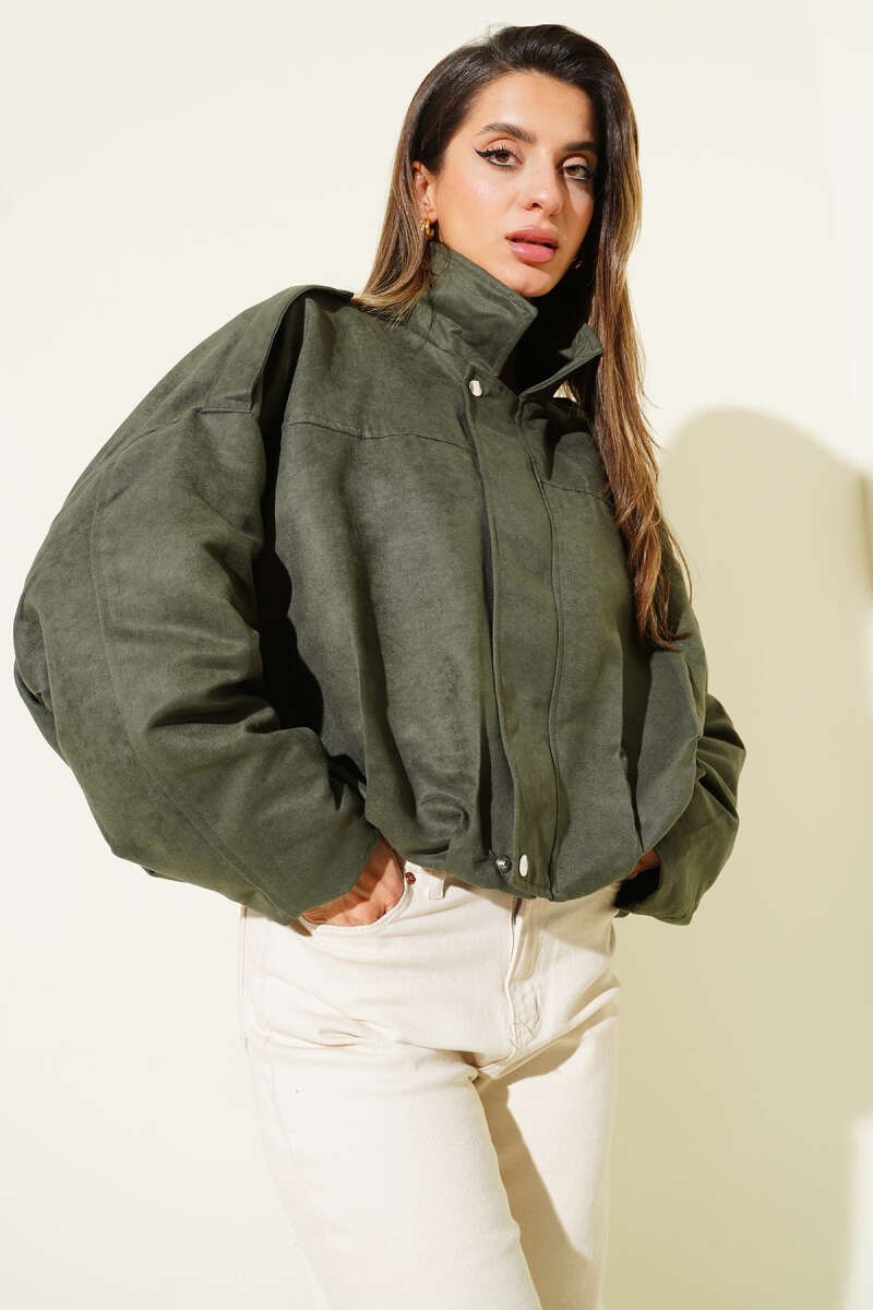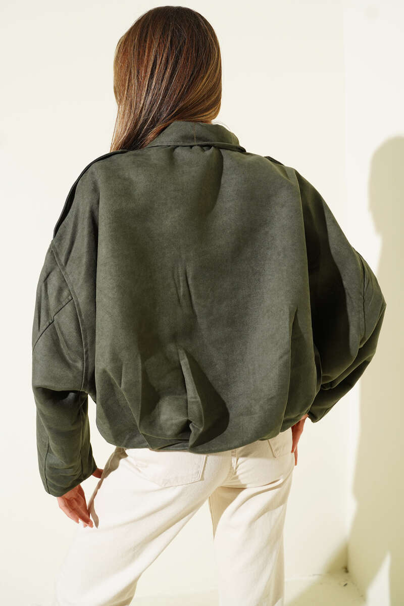 Fermuarlı Oversize Kısa Süet Ceket Taba