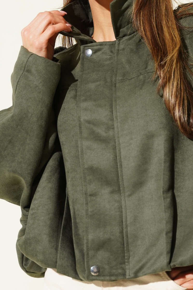 Fermuarlı Oversize Kısa Süet Ceket Kahve