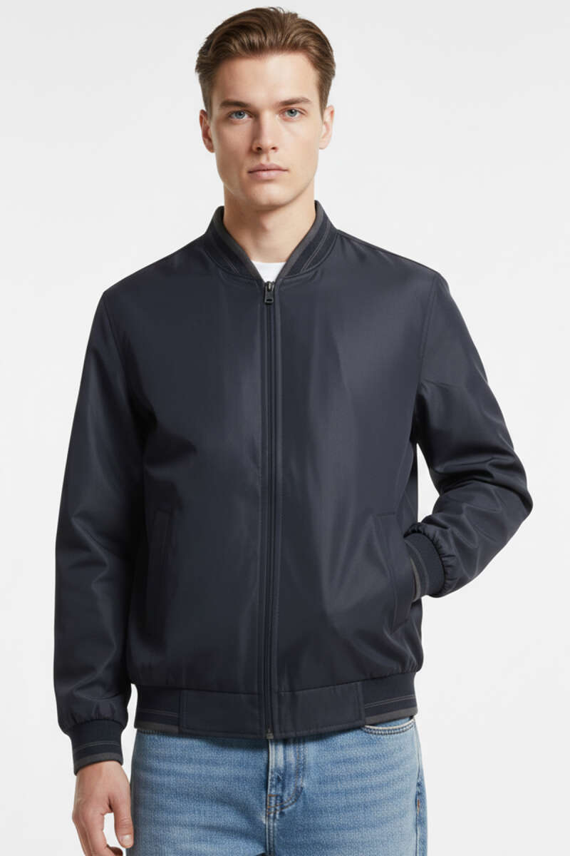 Çift Cep Detaylı Fermuarlı Erkek Mont Lacivert