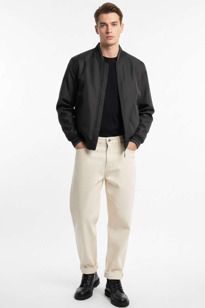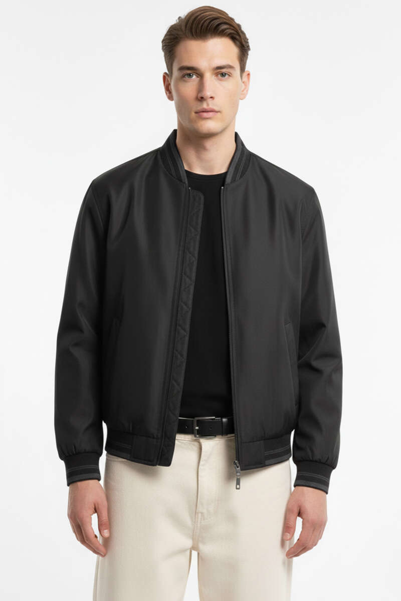 Fermuar Cepli Erkek Mevsimlik Mont Siyah