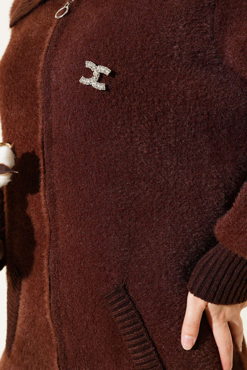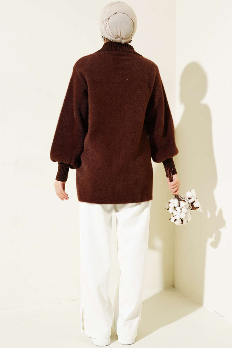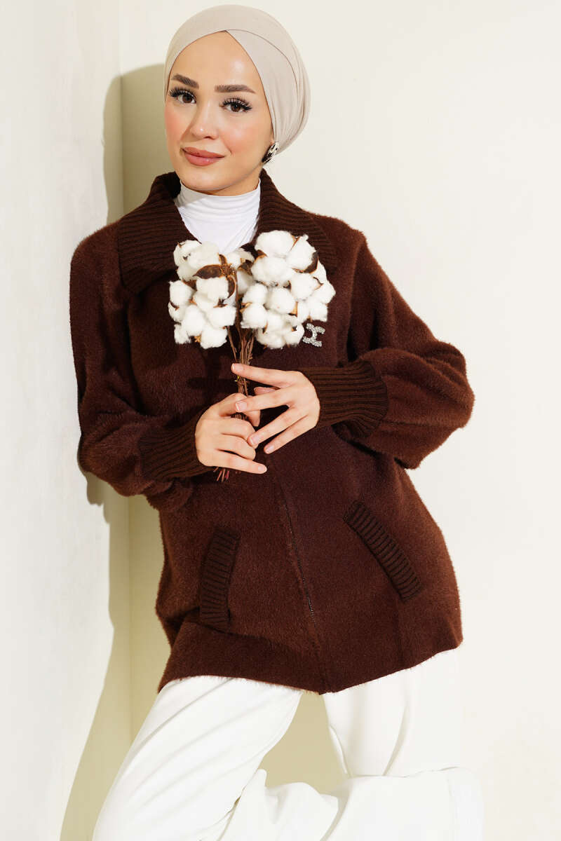 Düğmeli Uzun Merserize Hırka Kahve