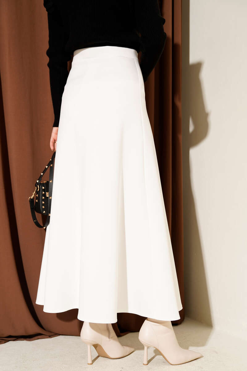 Fermuarlı Scuba Çan Etek Ekru