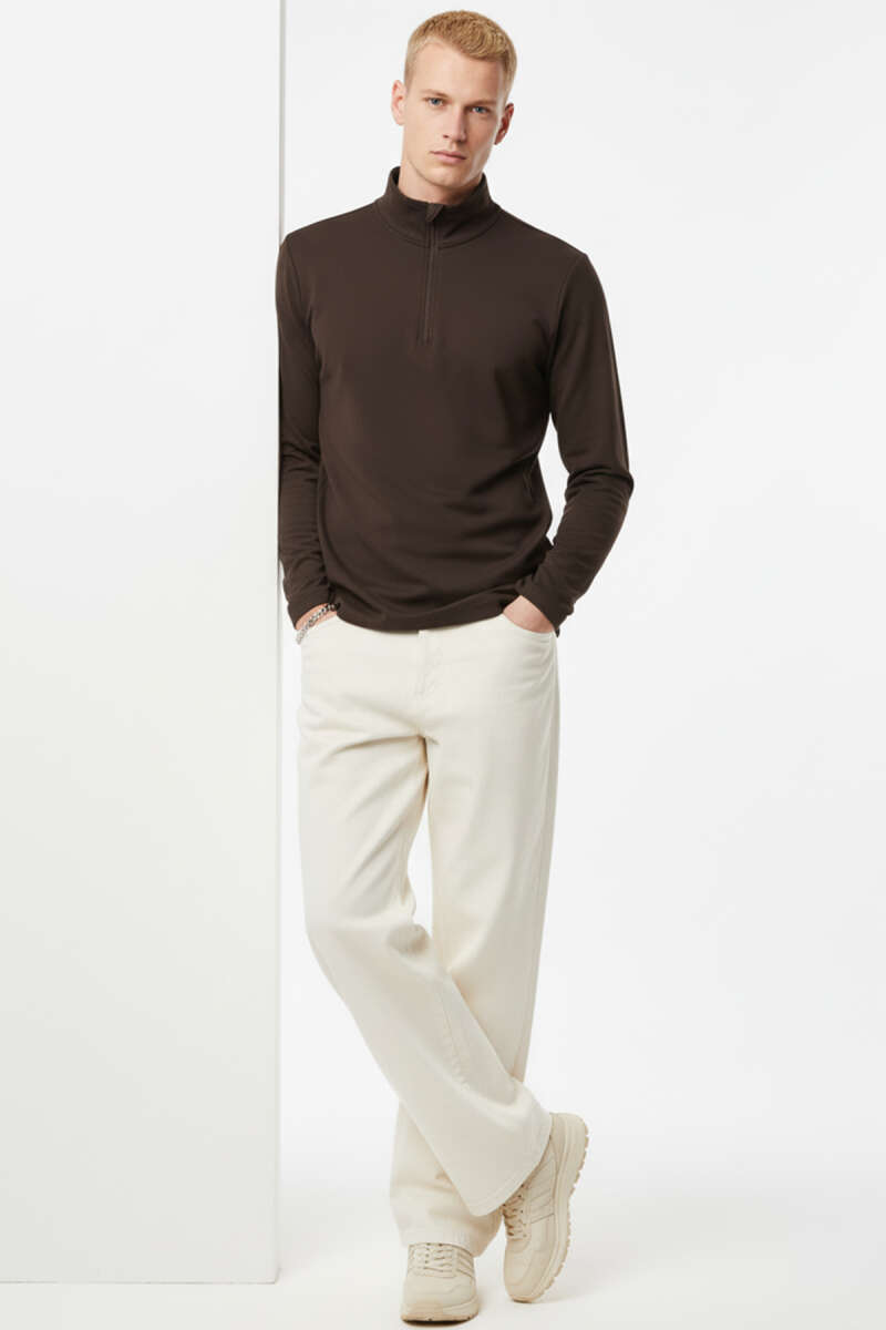 Fermuarlı Scuba Erkek Sweatshirt Kahve