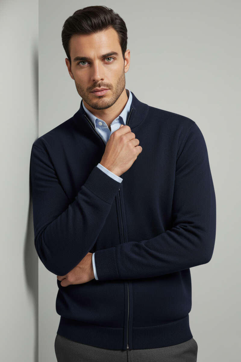 Armalı Fermuarlı Erkek Hırka Lacivert