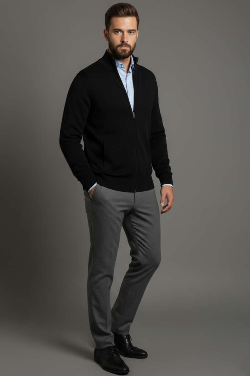 Ribanalı Selanik Erkek Sweatshirt Siyah