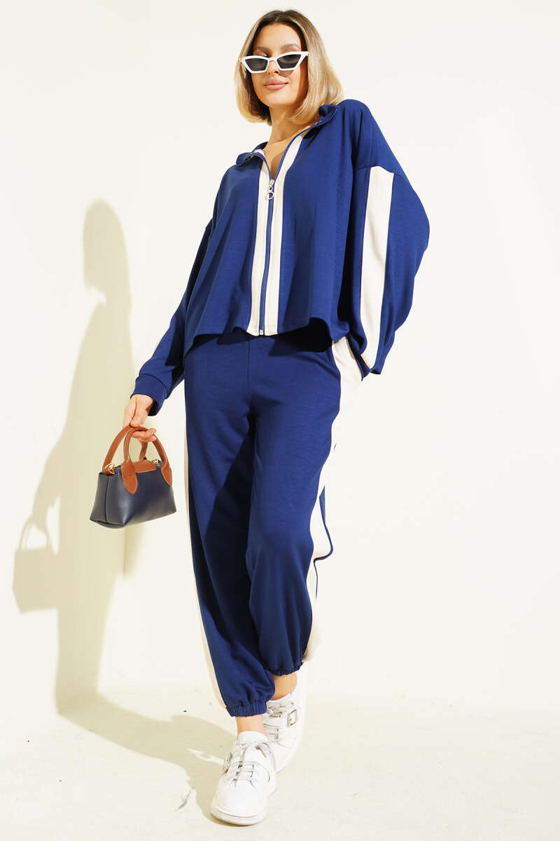 Fermuarlı Şeritli İkili Takım Lacivert