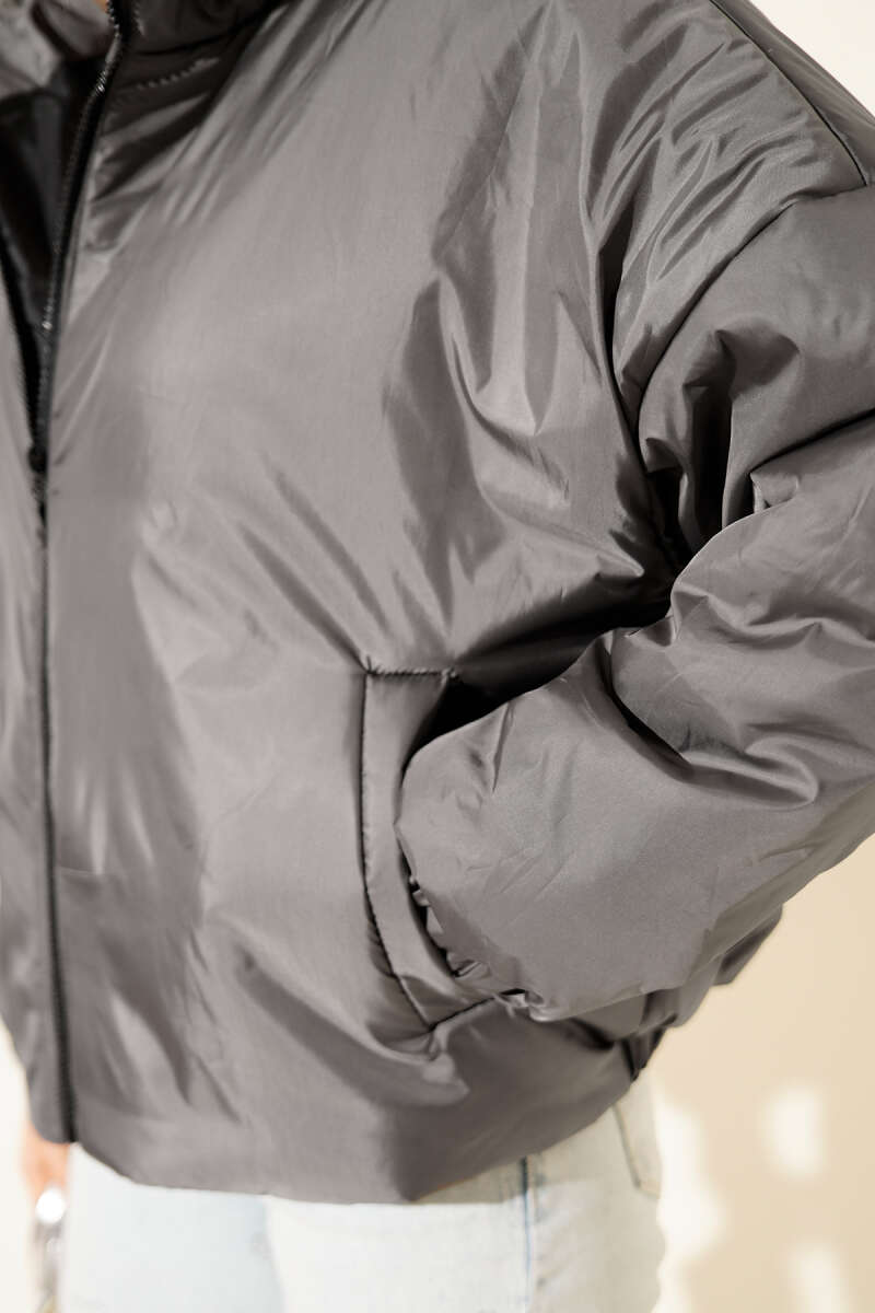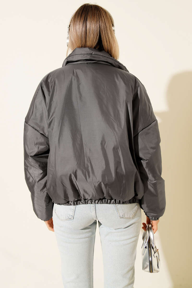 Bilek Lastik Detaylı Kısa Kaşe Ceket Gri