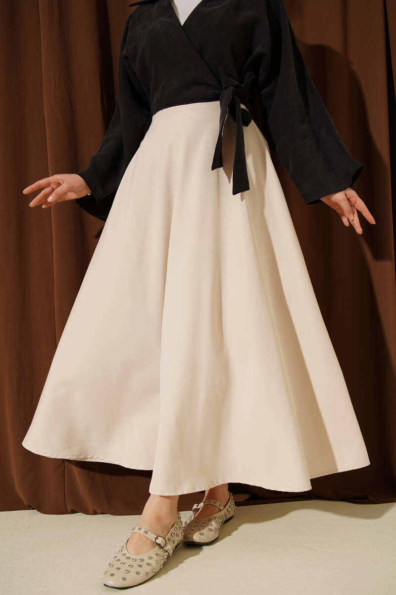 Fermuarlı Tensel Kloş Etek Çağla Yeşili