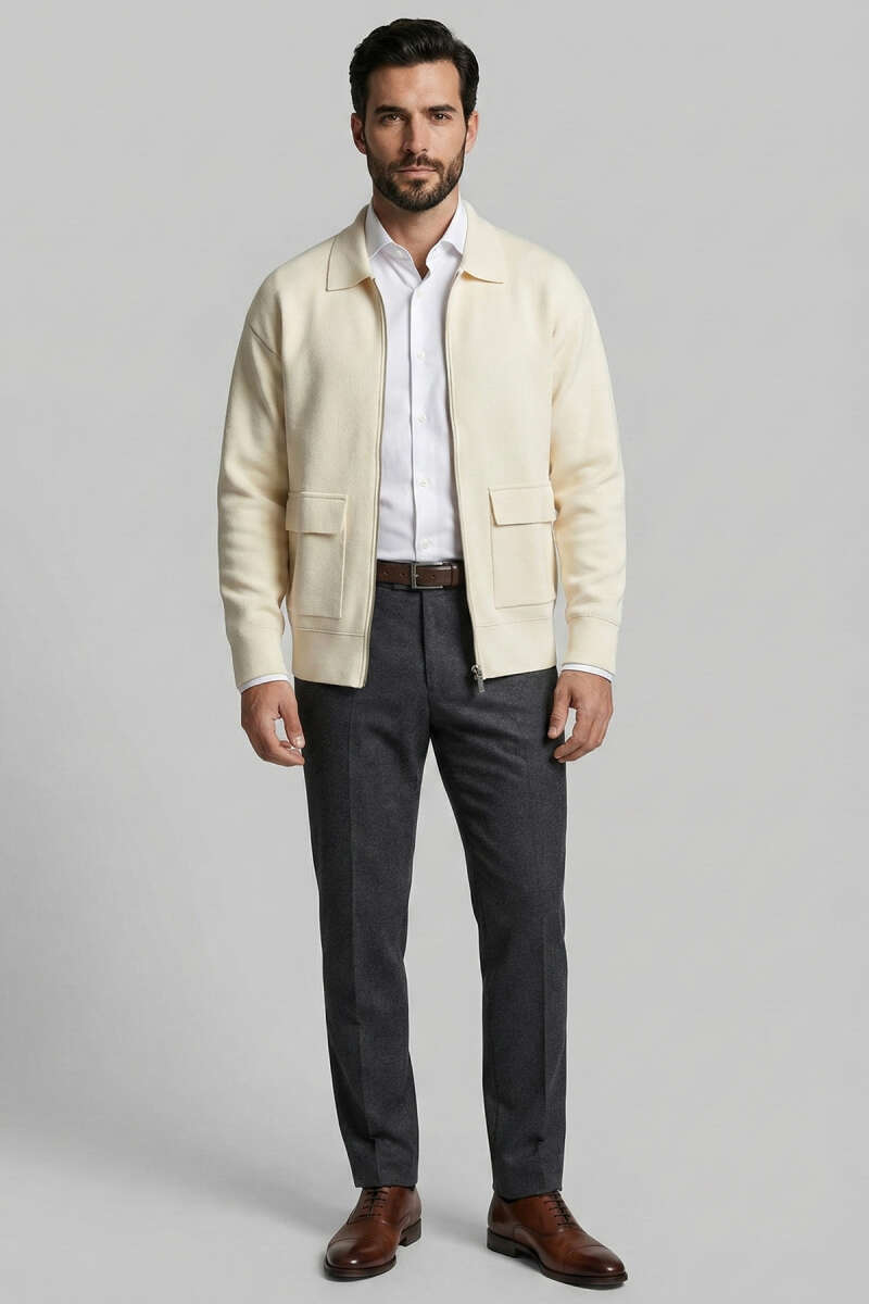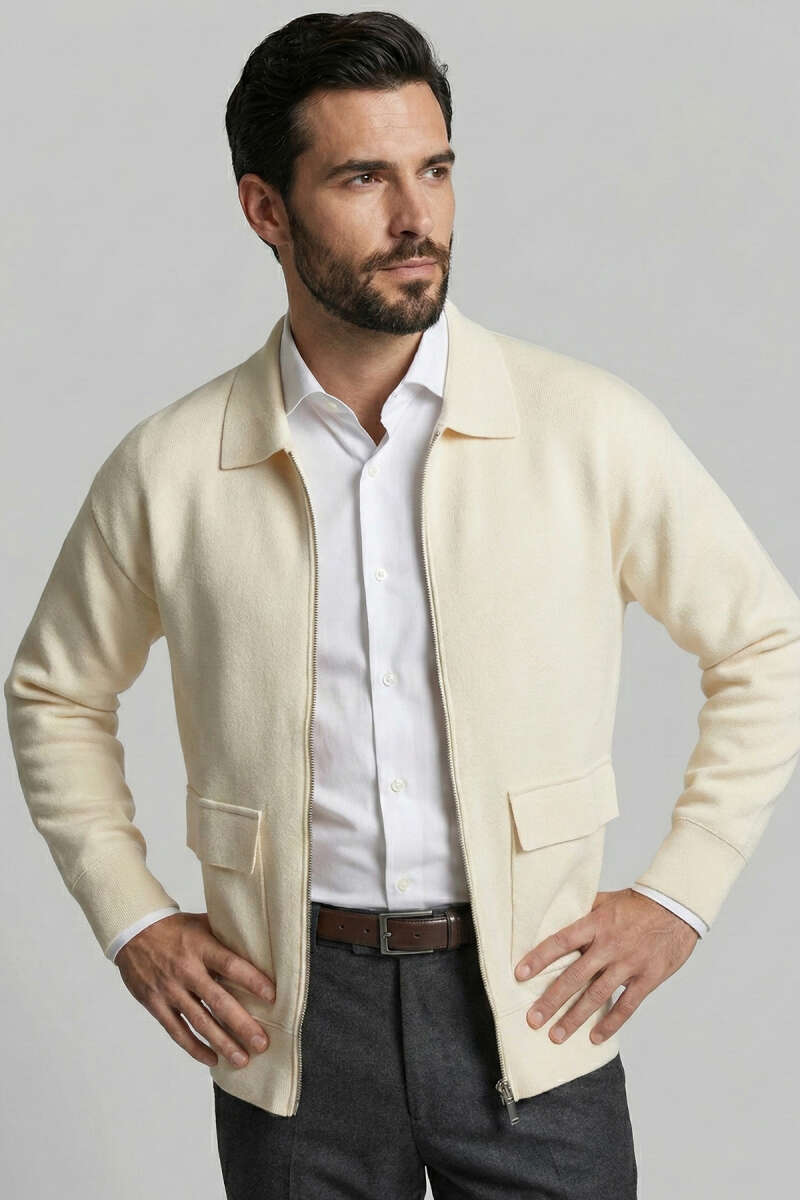Üç İplik Kapüşonlu Erkek Hırka Bej