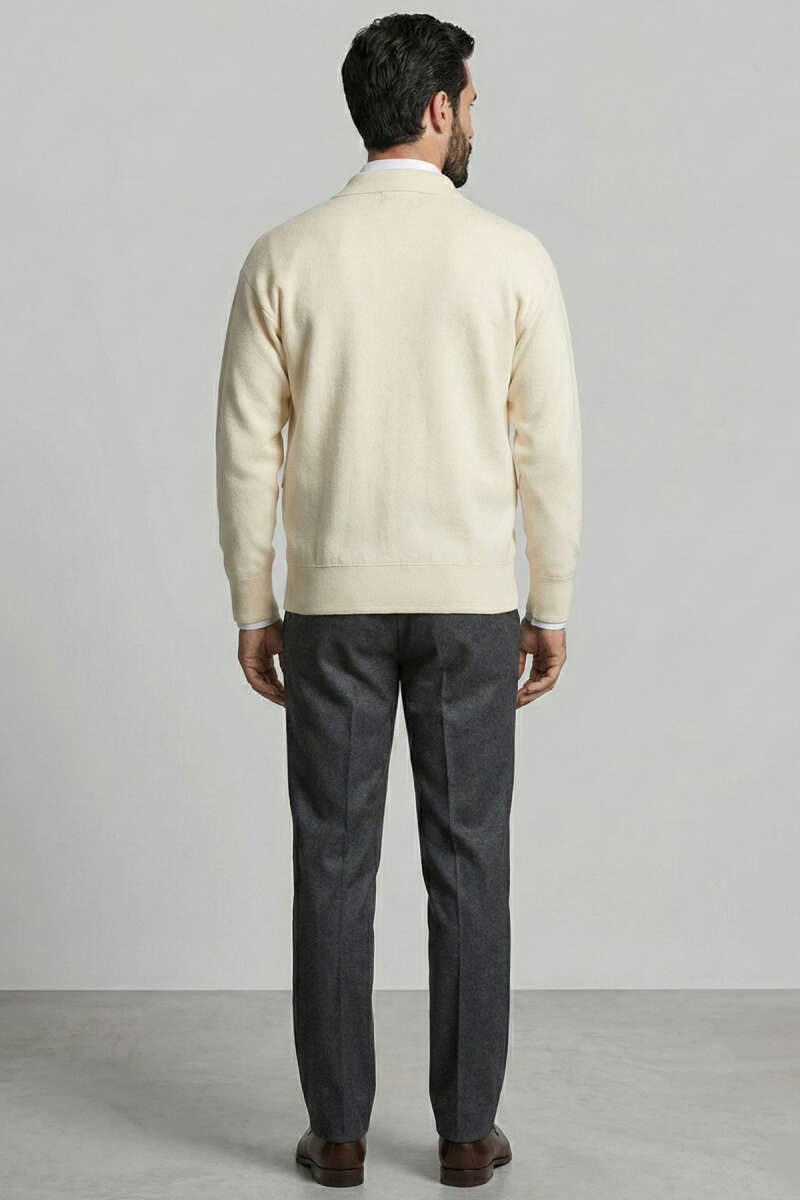 V Yaka Fermuarlı Erkek Triko Hırka Gri