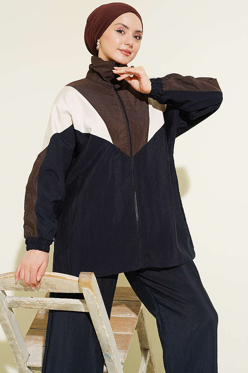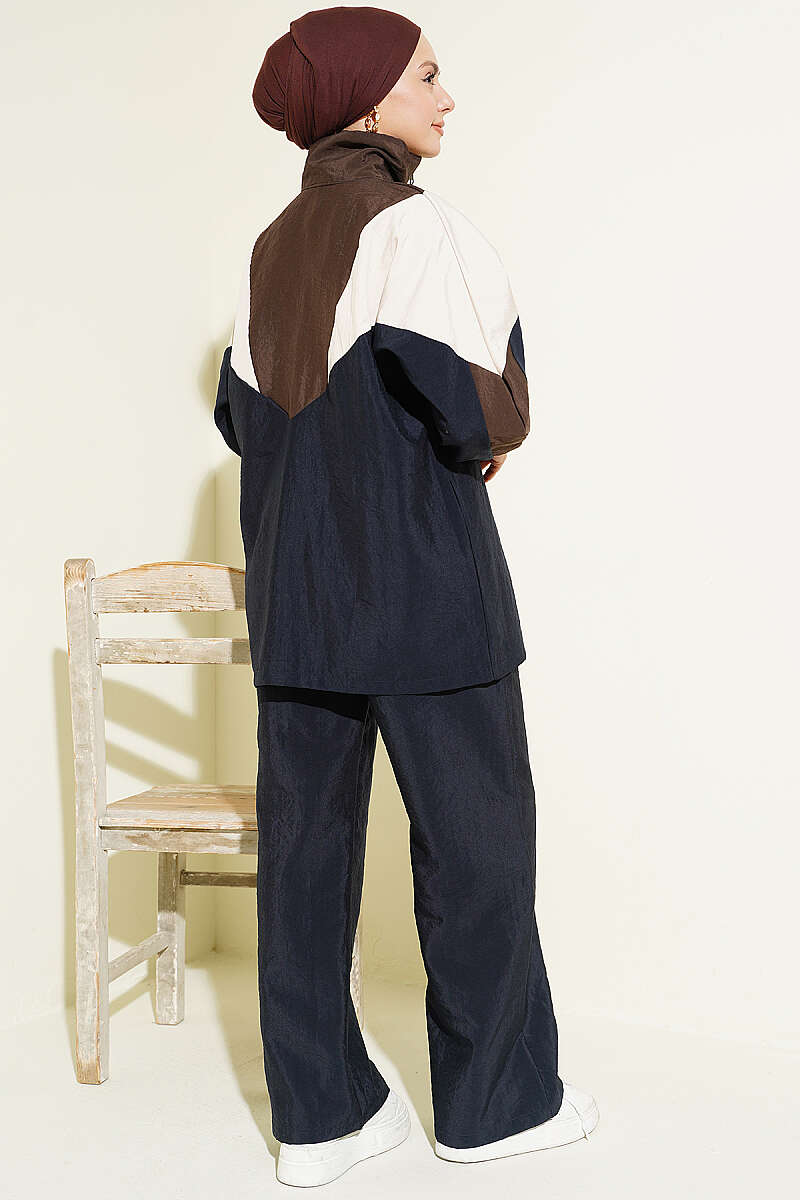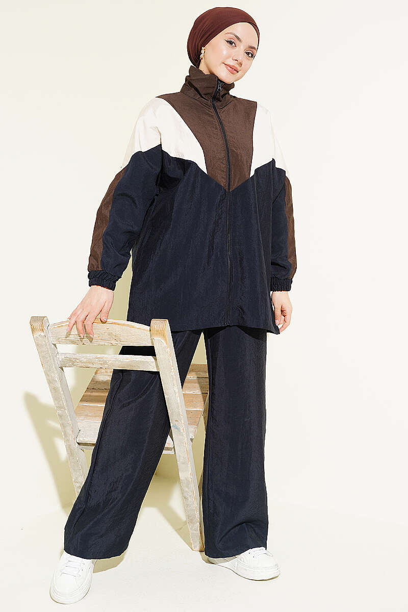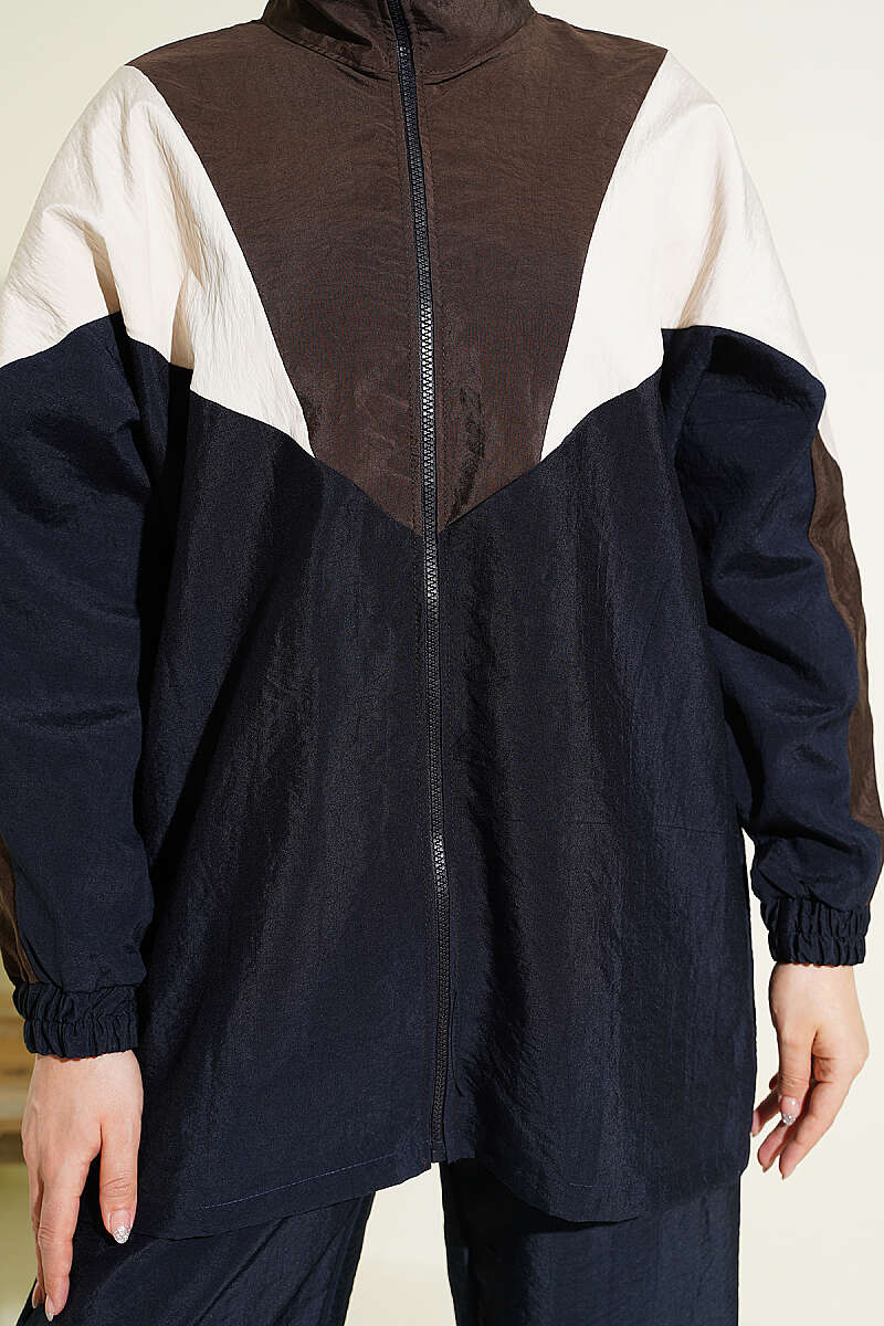 Fermuarlı V Renk Bloklu İkili Takım Lacivert