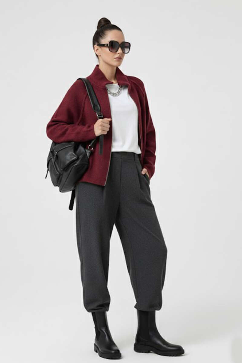 Fermuarlı Yarım Boğazlı Triko Hırka Bordo