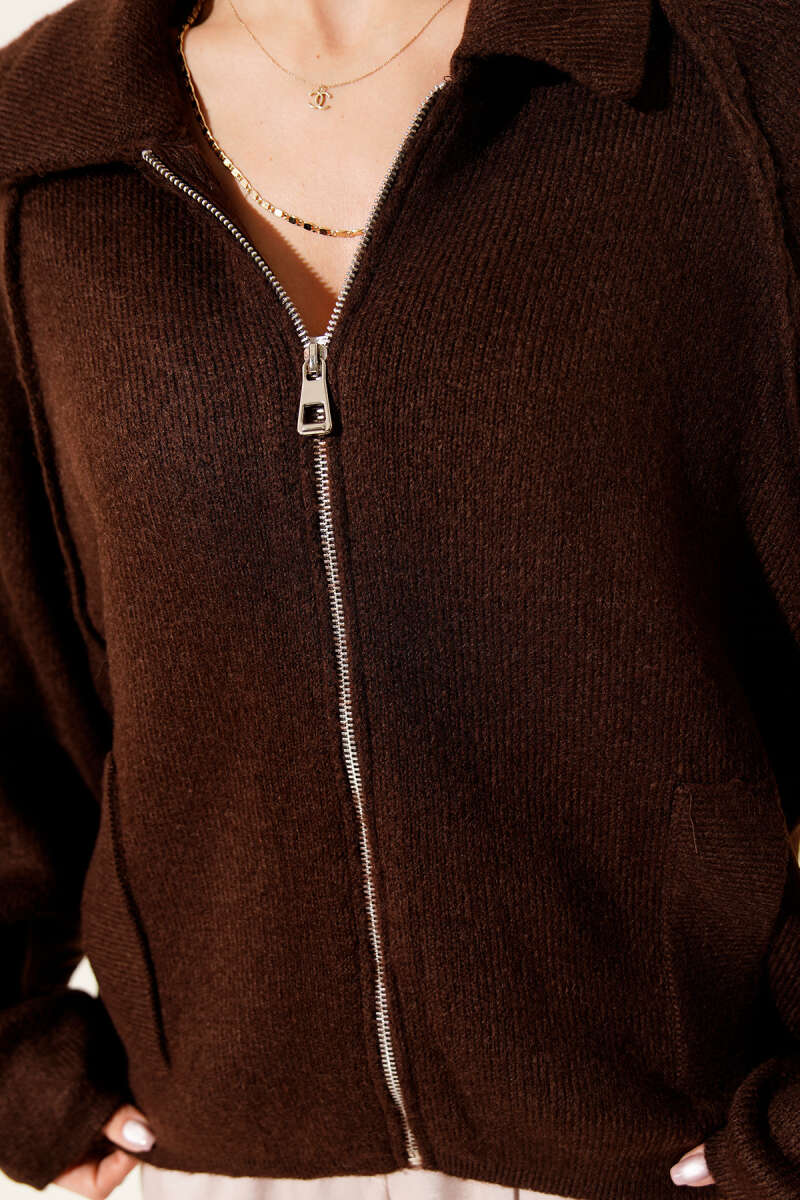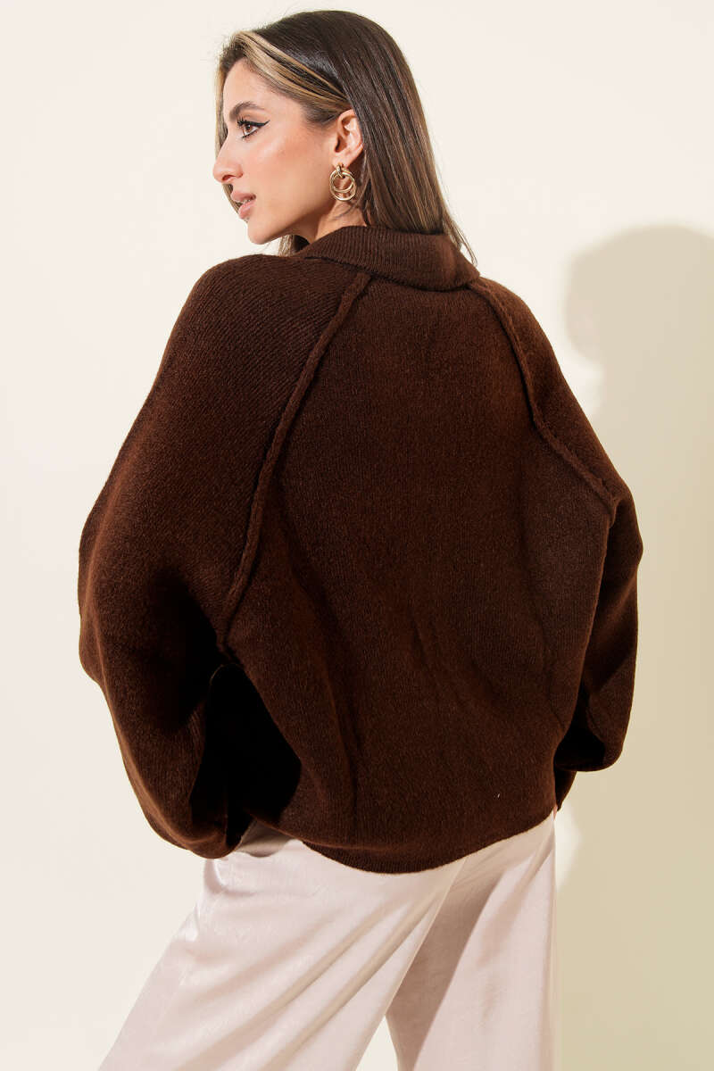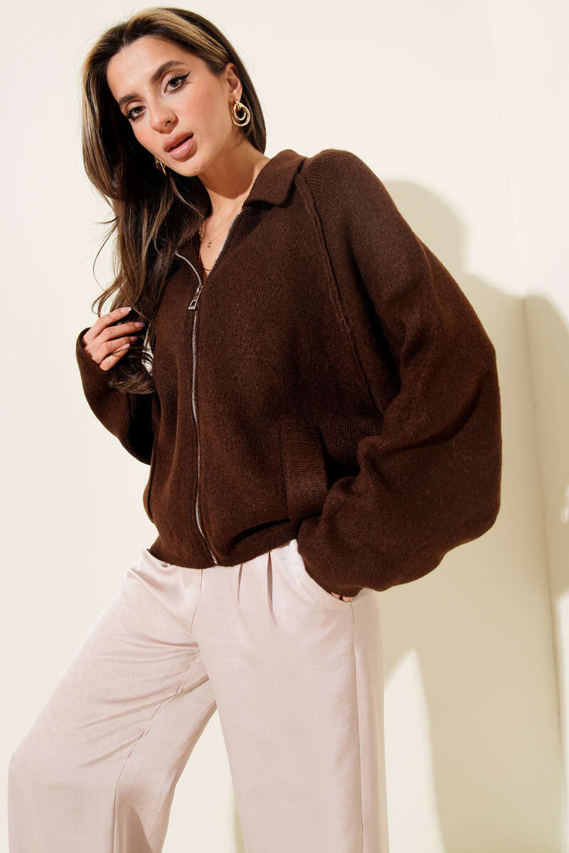 Fermuarlı Yarım Boğazlı Triko Hırka Kahve