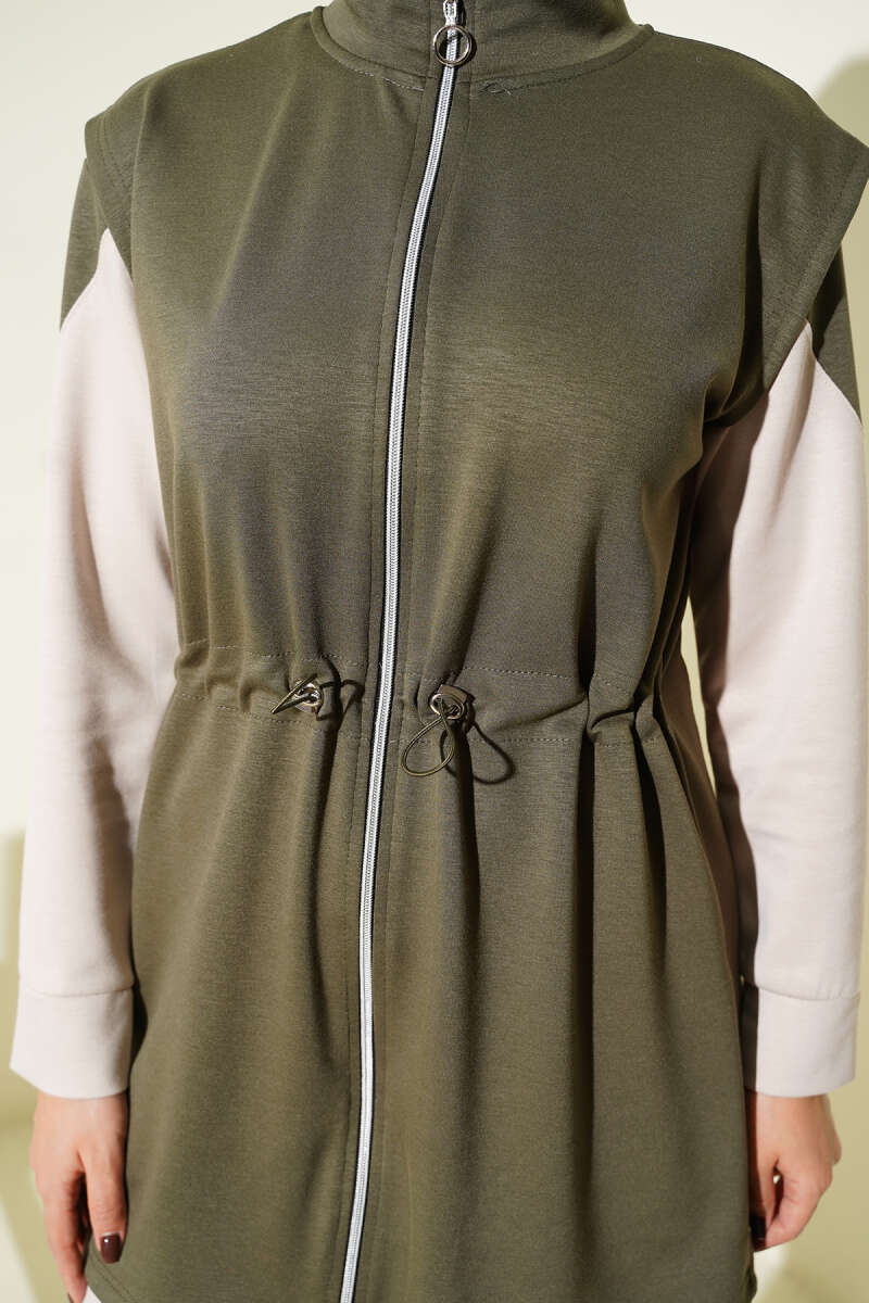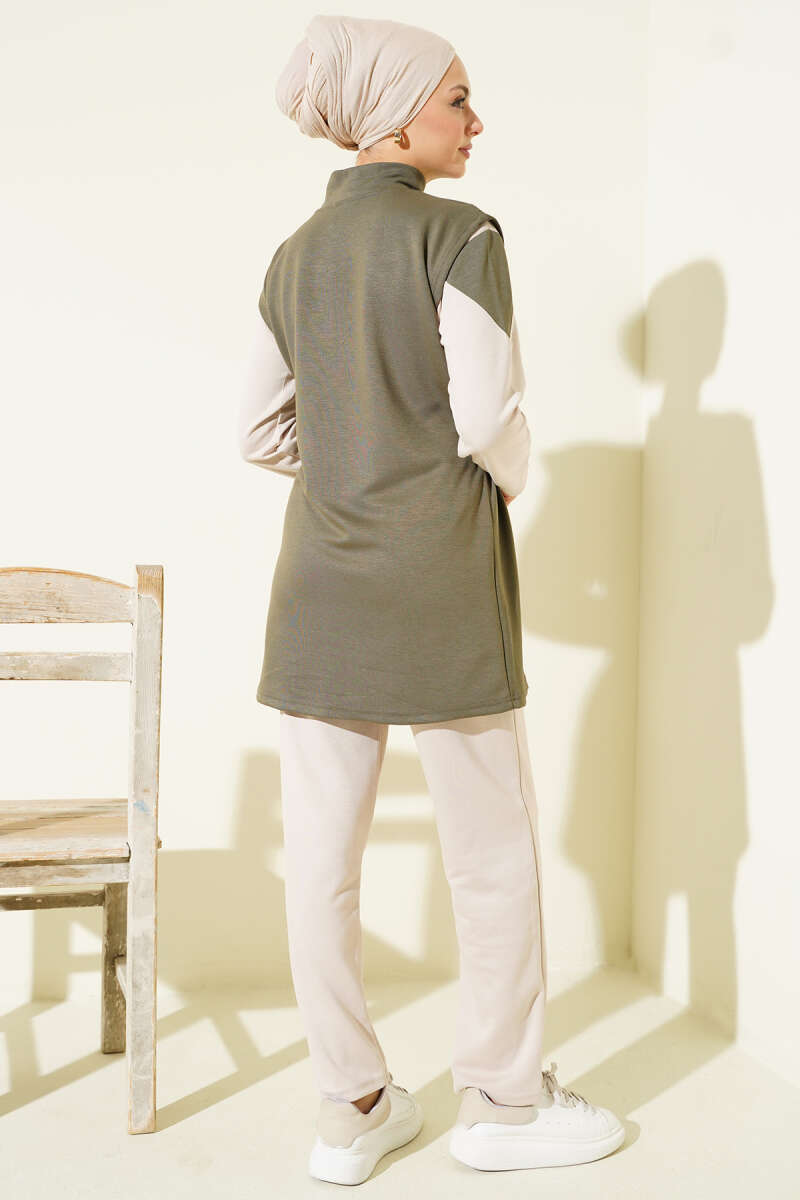 Fermuarlı Yelekli Loyşa Üçlü Takım Haki