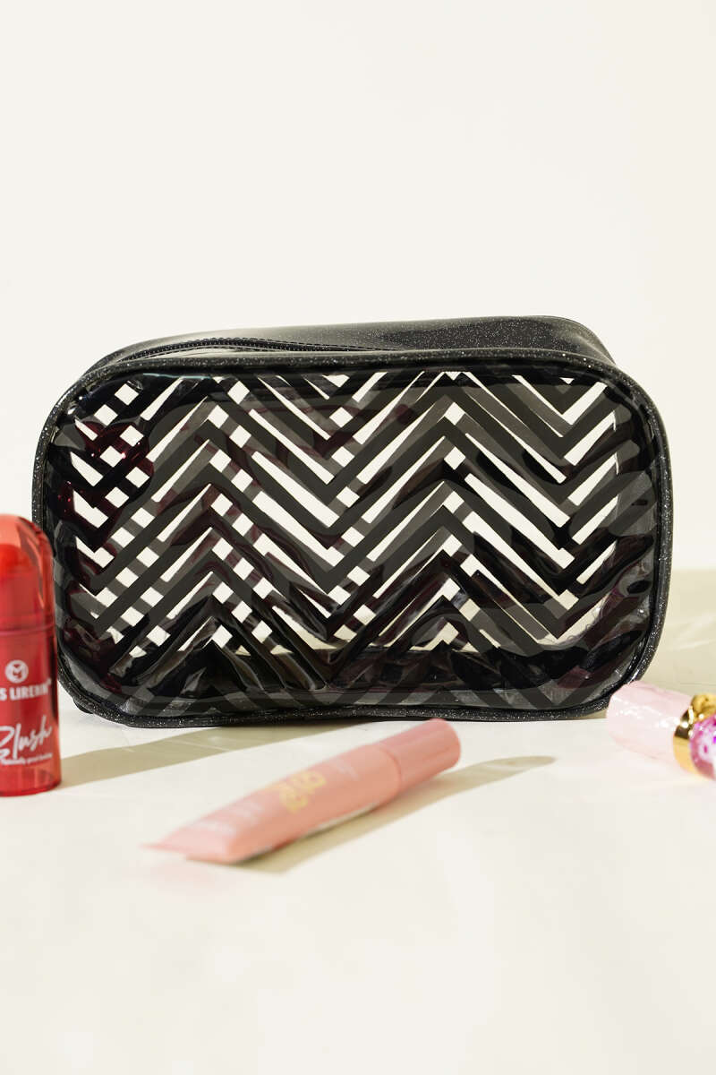 Fermuarlı Zigzag Desenli Kozmetik Çantası Siyah