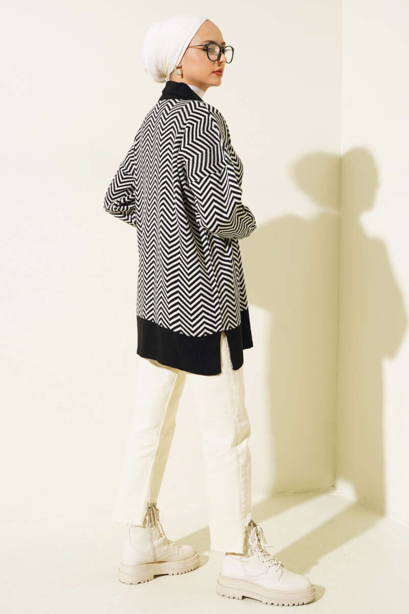 Kol Ucu Düğmeli Şal Yaka Triko Hırka Füme