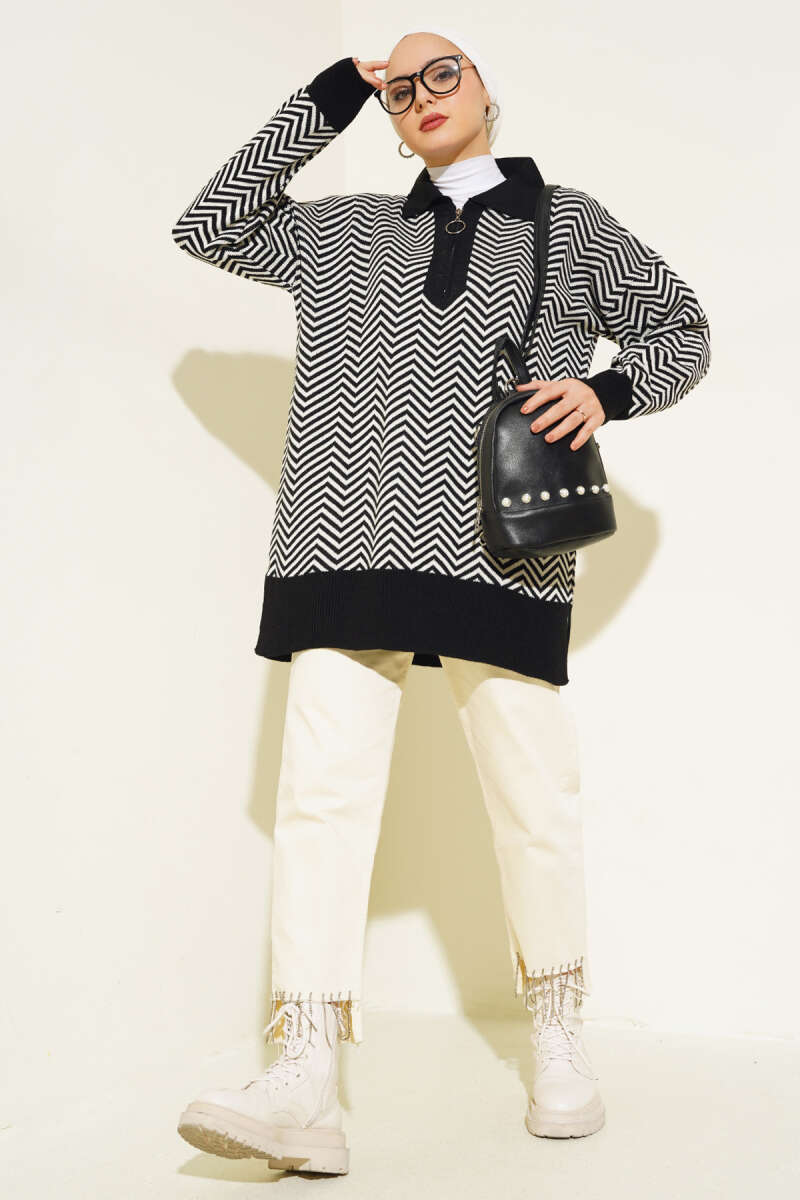 Salaş Bisiklet Yaka Simli Triko Tunik Taş
