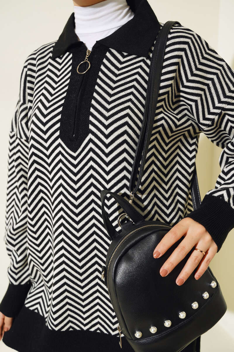 Salaş Bisiklet Yaka Simli Triko Tunik Siyah
