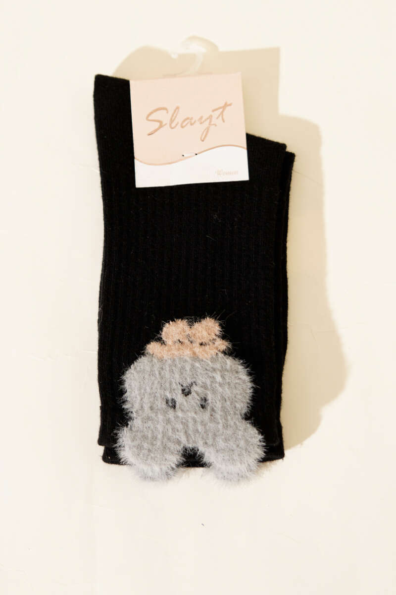 Figürlü Sakallı Kadın Soket Çorap Siyah