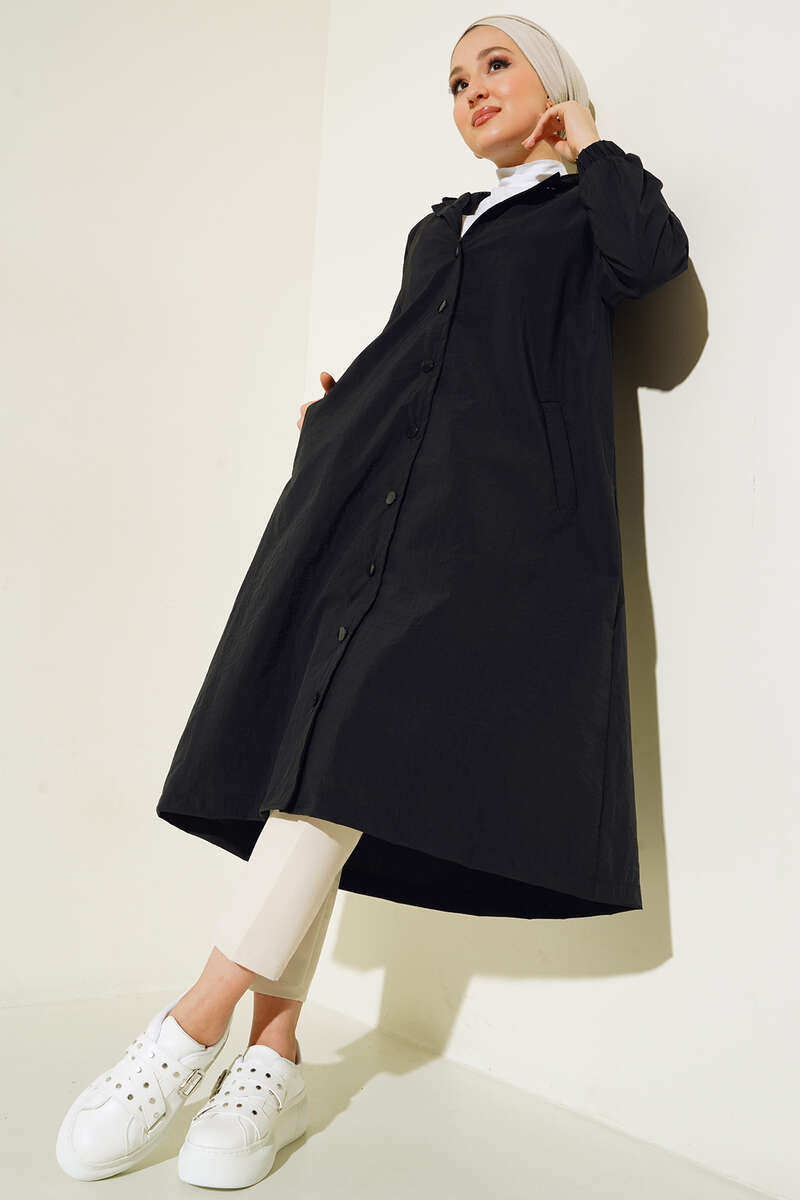 Yeni sezon yağmurluğumuzun içi file astarlıdır. Kpüşonlu yağmurluk iki adet cebe sahiptir. Boydan düğmeli olan yağmurluğumuzun bilerkleri lastiklidir. Renk çeşitleri mevcuttur.