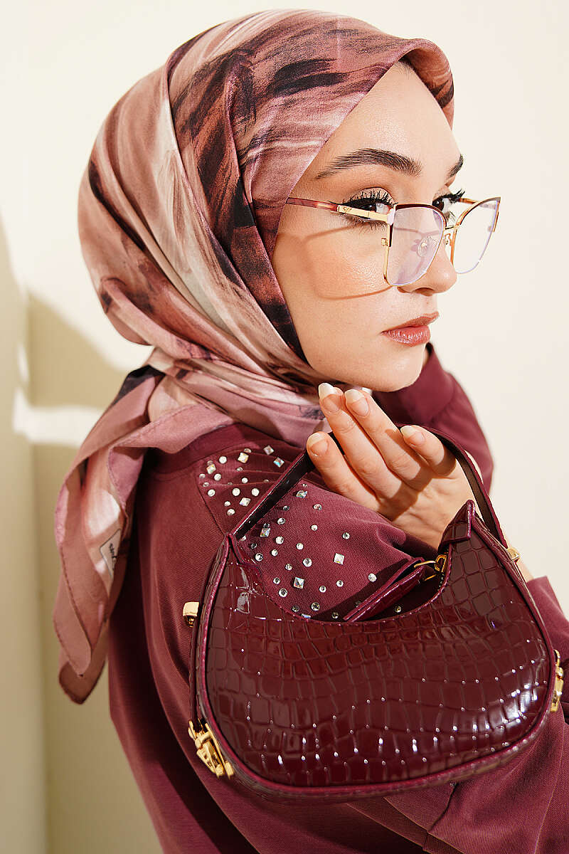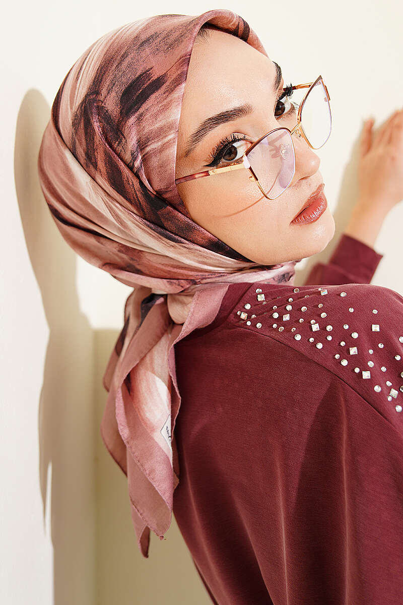 Fırça Desenli Eşarp Gül Kurusu