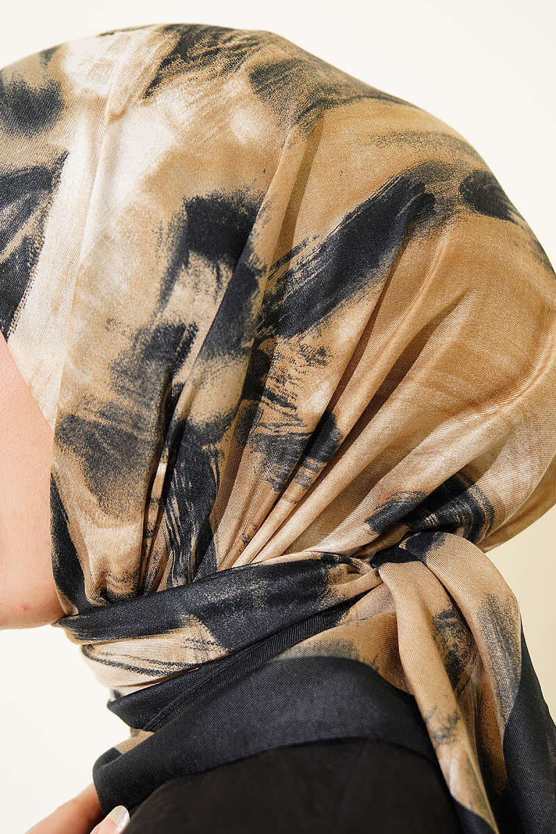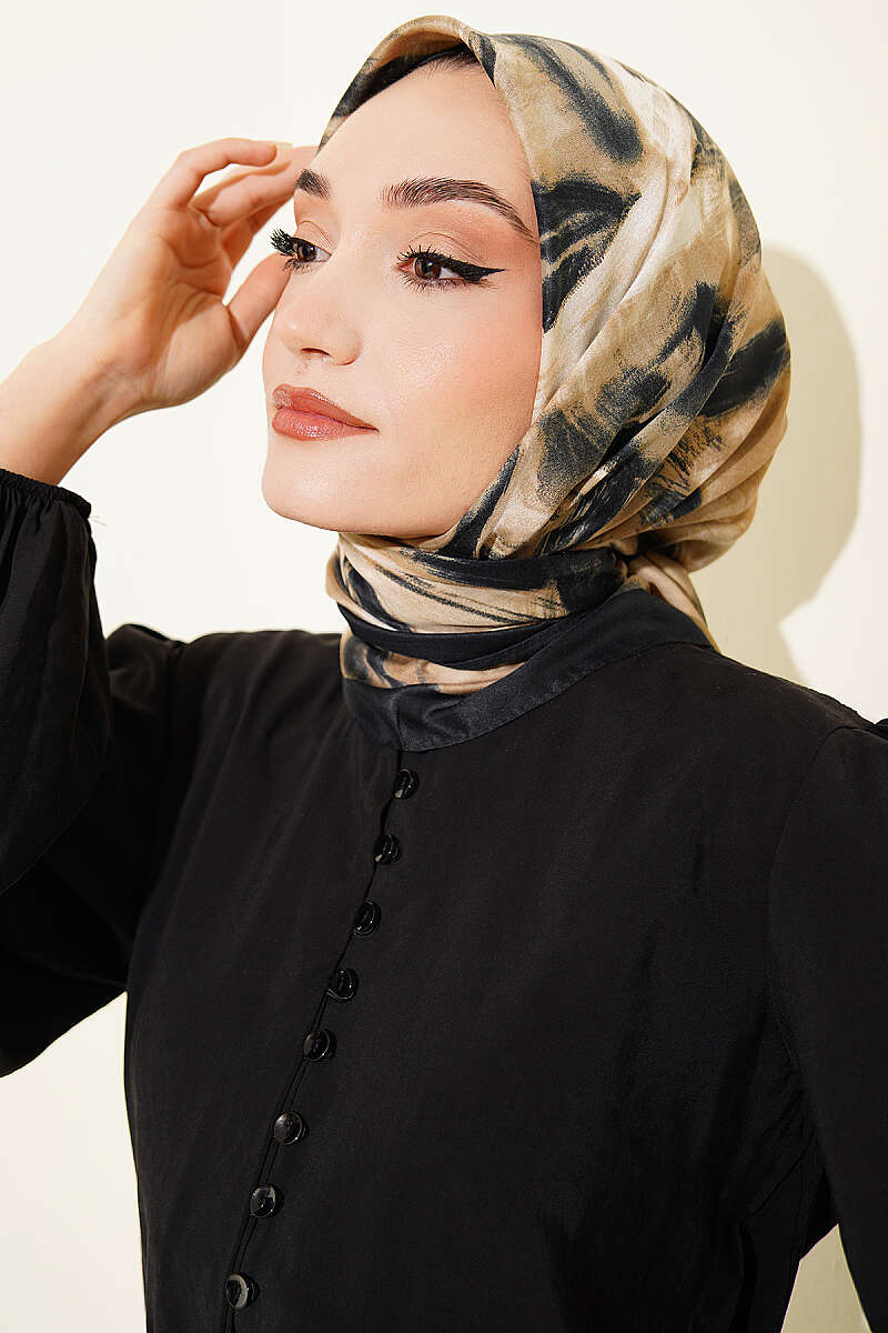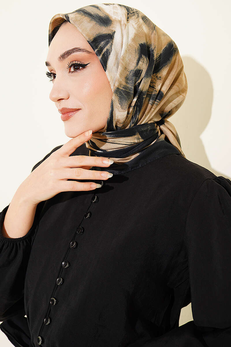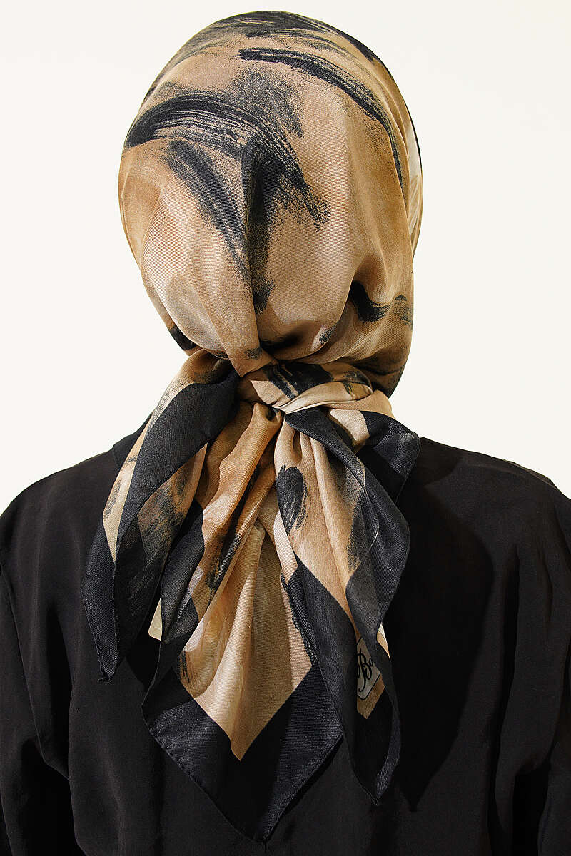 Fırça Desenli Eşarp Siyah Bej