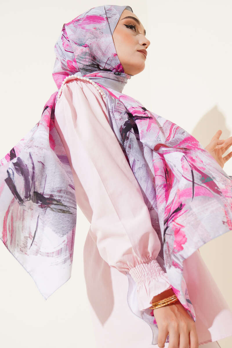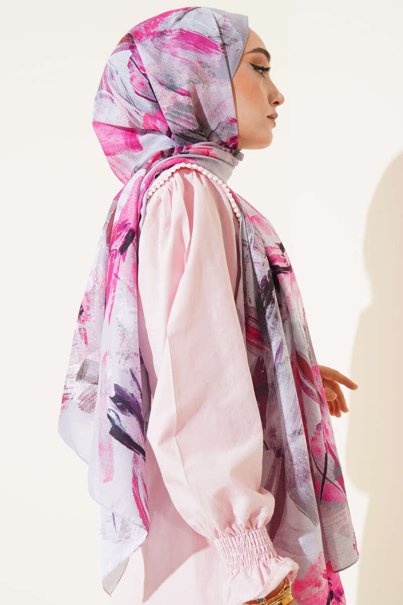 Mini Boncuk Detaylı Eşarp Lila
