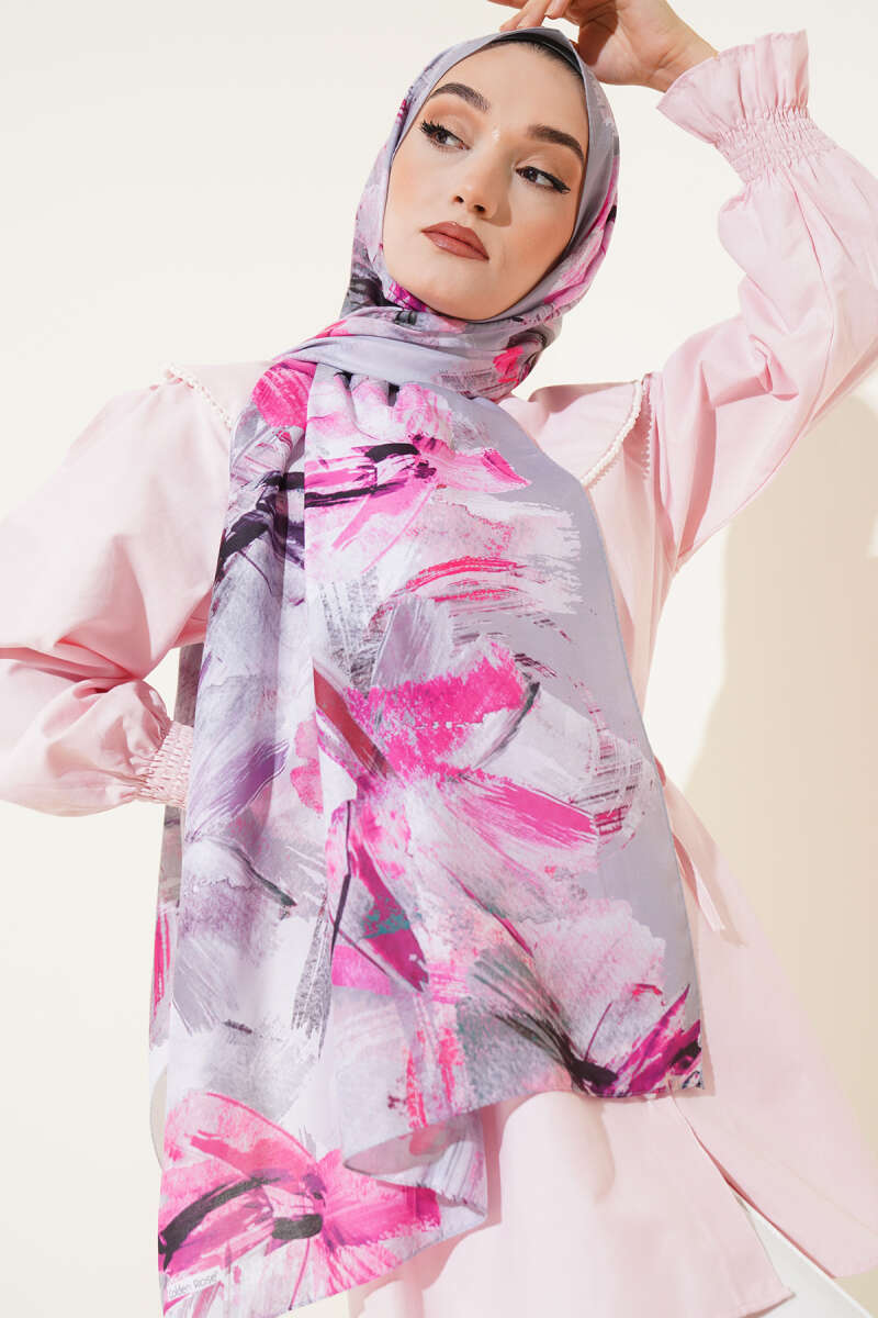 Mini Boncuk Detaylı Eşarp Kayrak Grisi