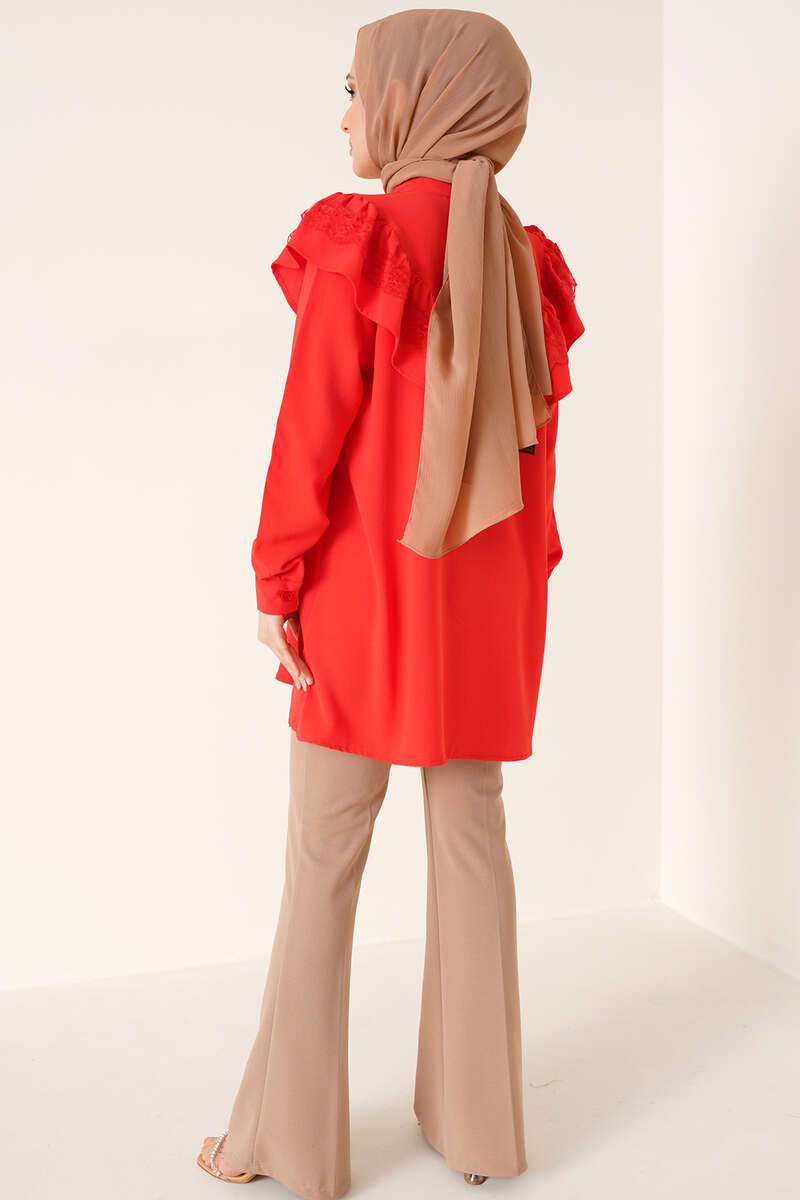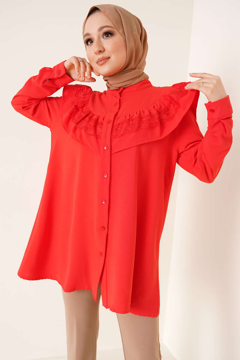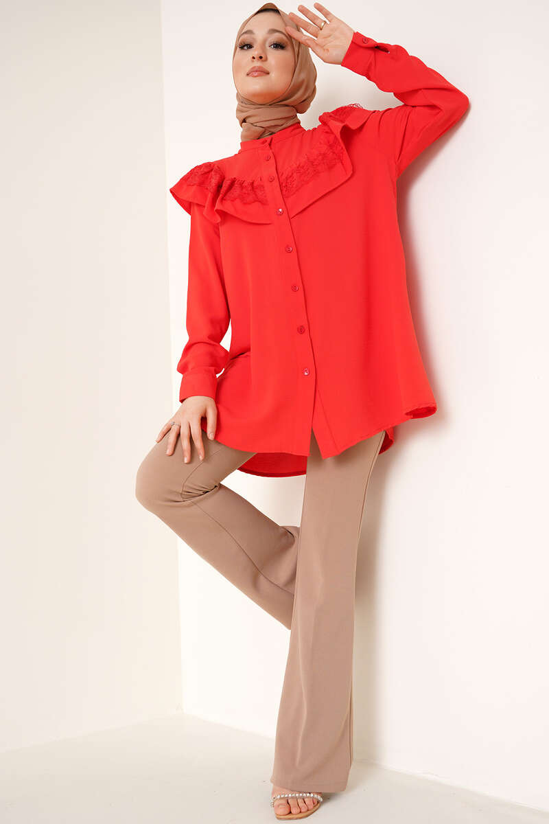Fırfır Dantelli Gömlek Alizarin