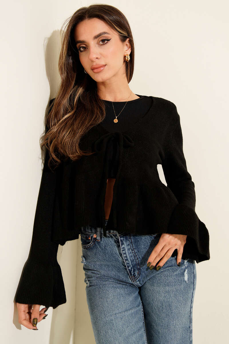 Kapşonlu Fermuarlı Kısa Hırka Siyah