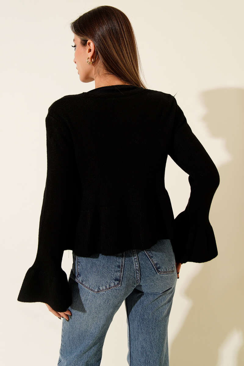 Geniş Kollu Sakallı Kısa Triko Kazak Lila