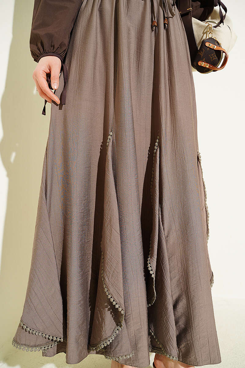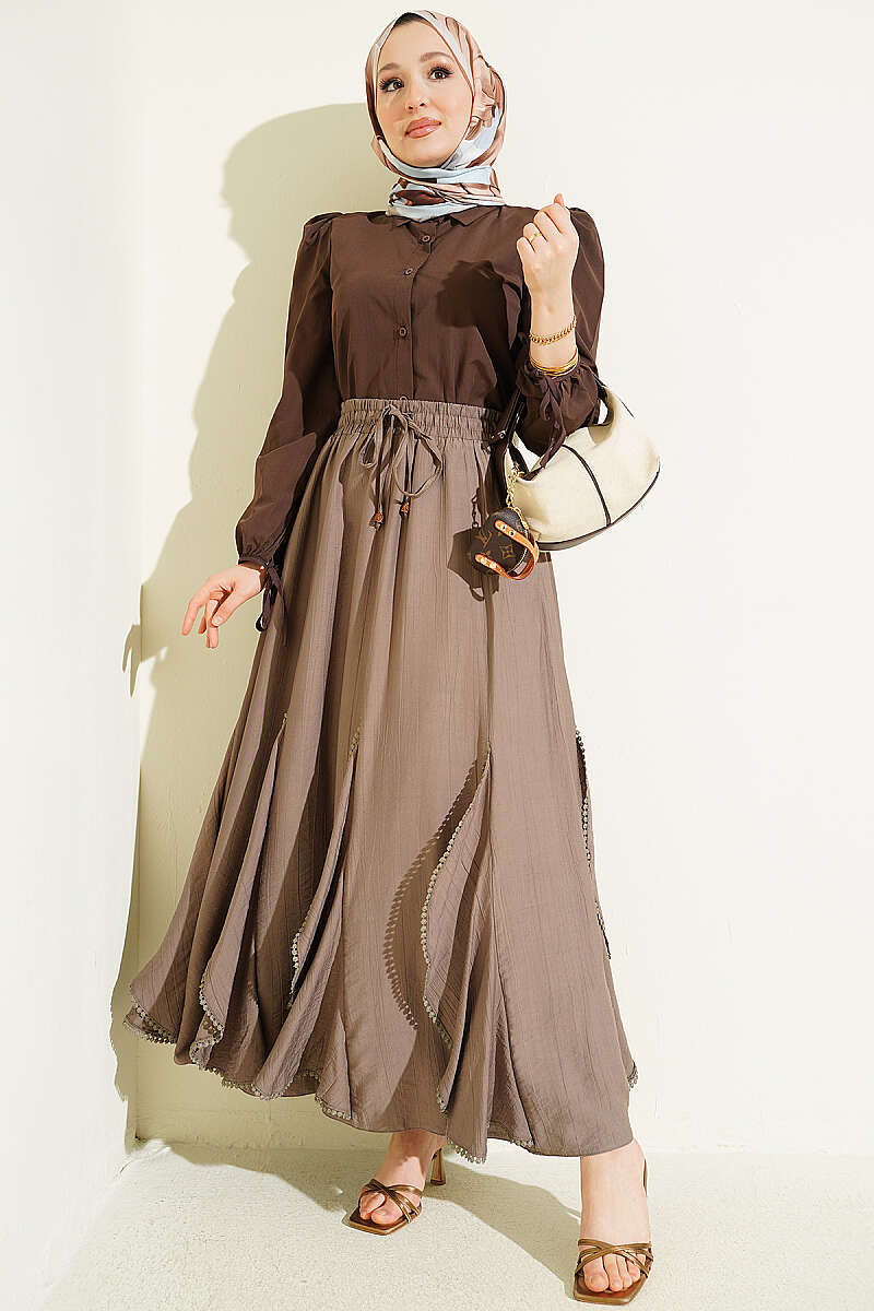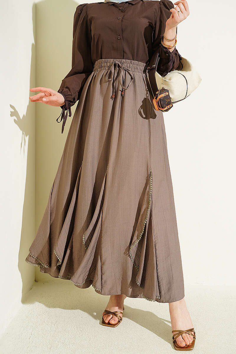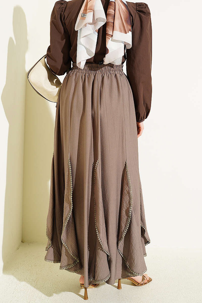 Fırfır Detaylı Beli Lastikli Etek Vizon