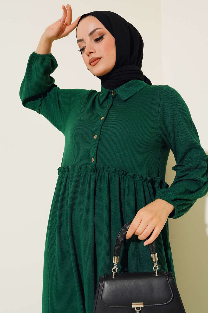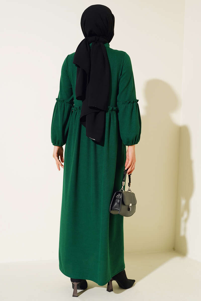Fırfır Detaylı Burgu Fitilli Elbise Yeşil