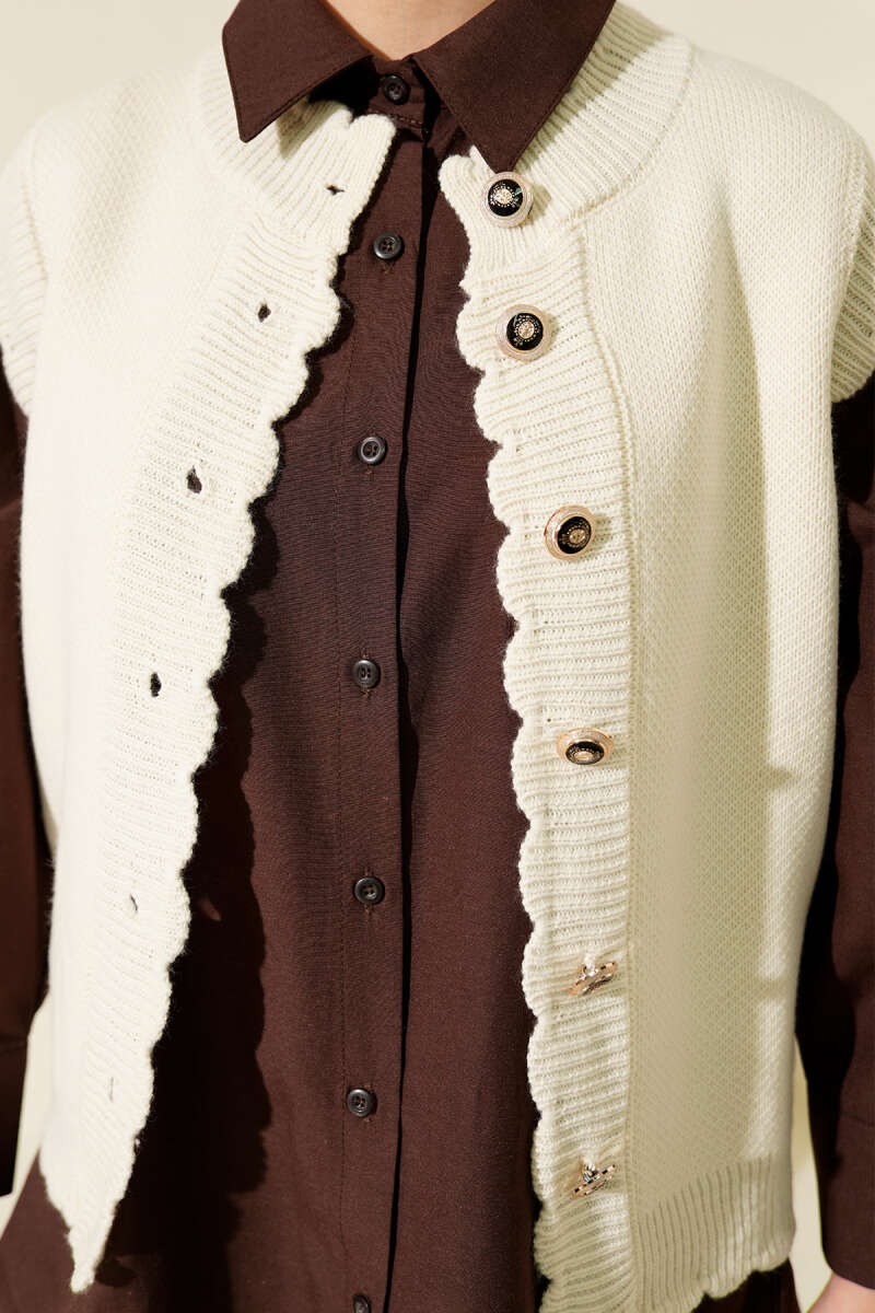 Fırfır Detaylı Düğmeli Triko Yelek Bej
