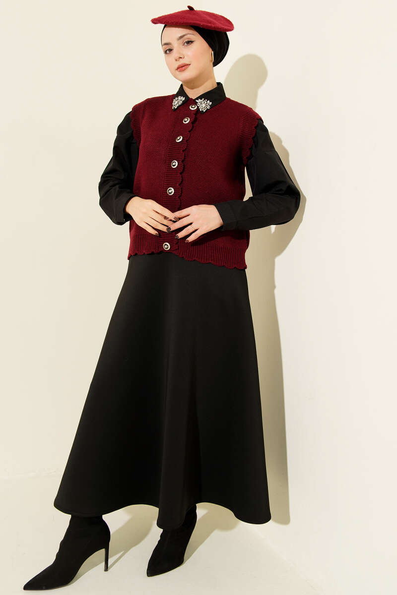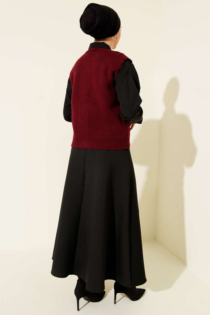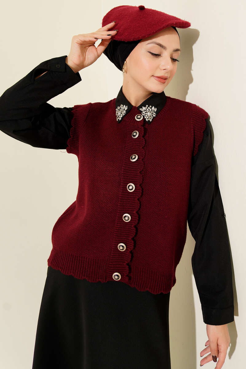Fırfır Detaylı Düğmeli Triko Yelek Kahve