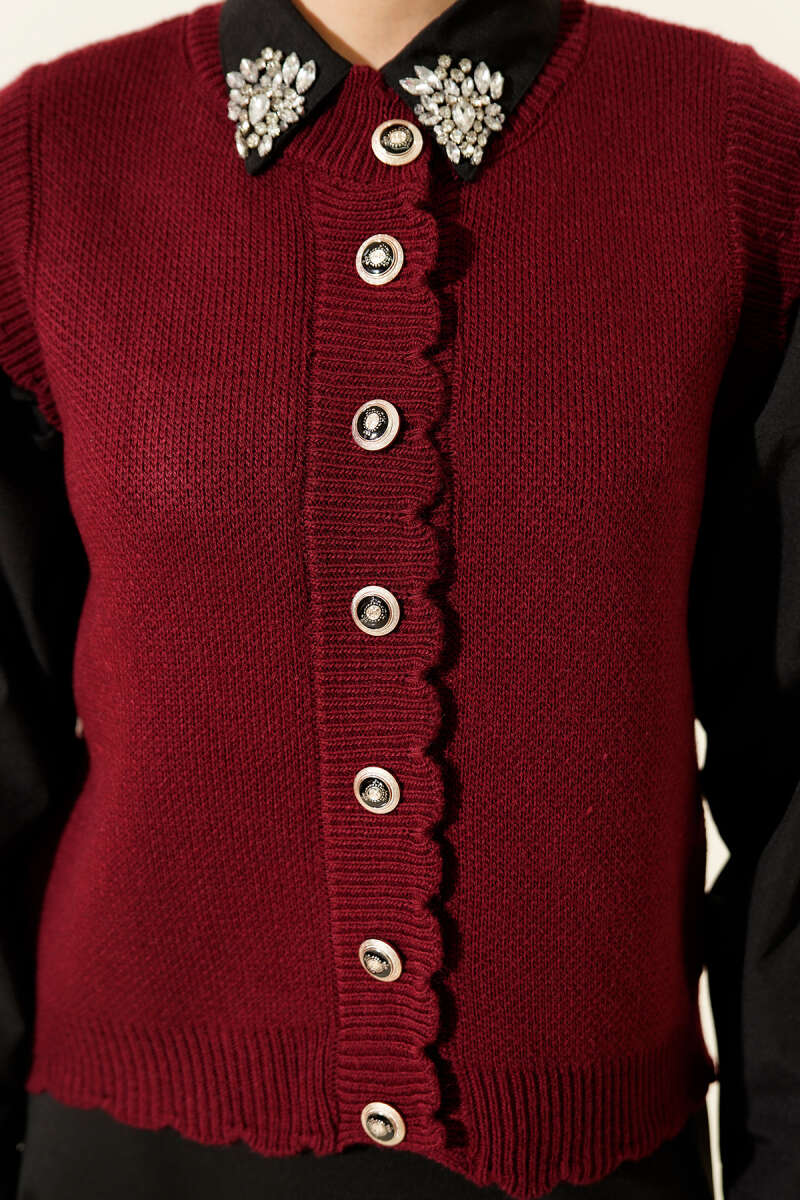 Gold Düğmeli Ters Dikişli Triko Hırka Nefti