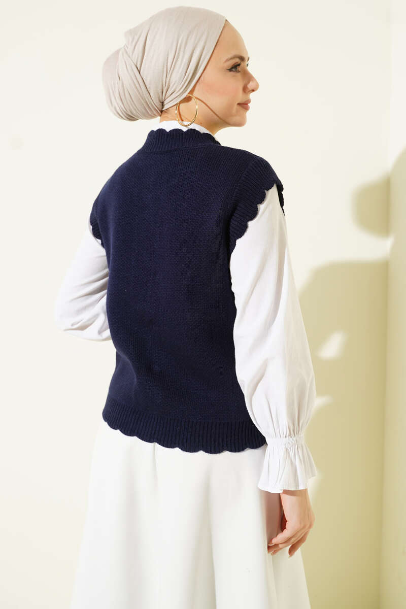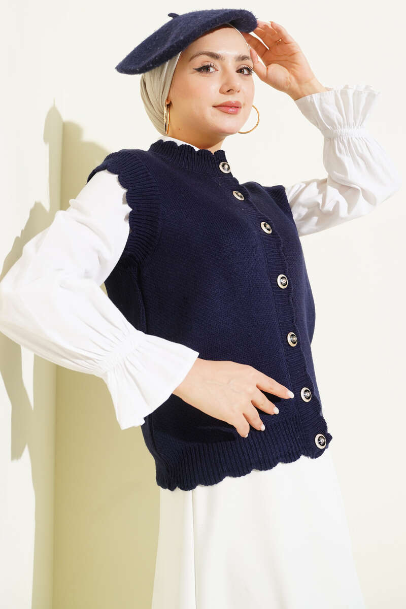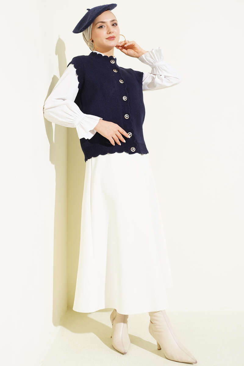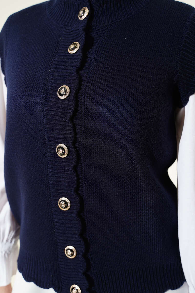 Fırfır Detaylı Düğmeli Triko Yelek Siyah