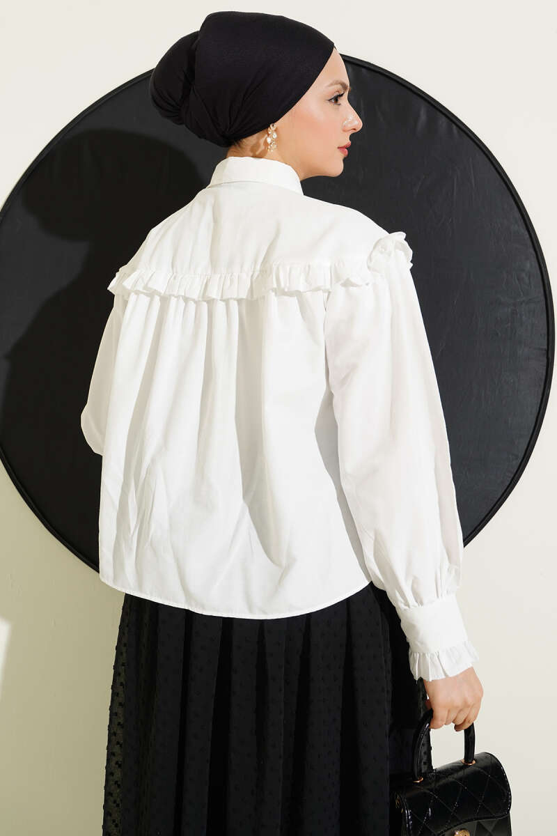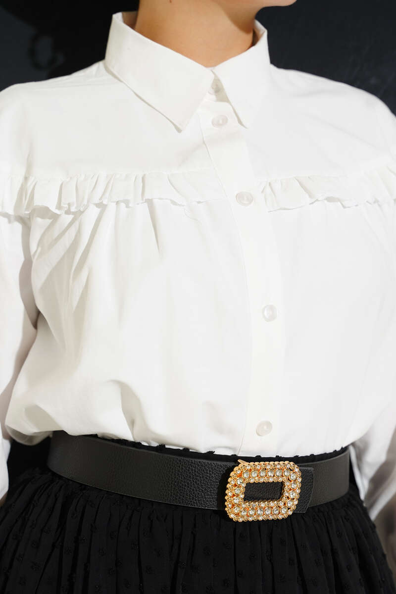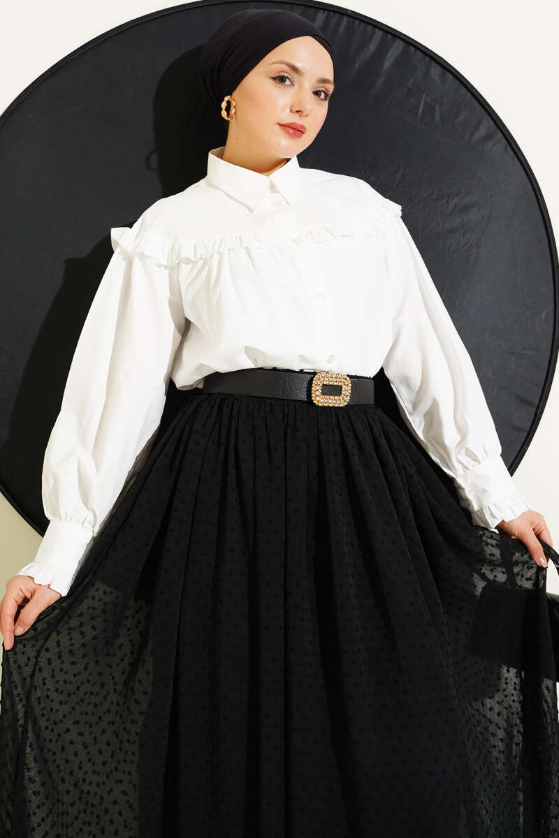 Fırfır Detaylı Kısa Gömlek Siyah
