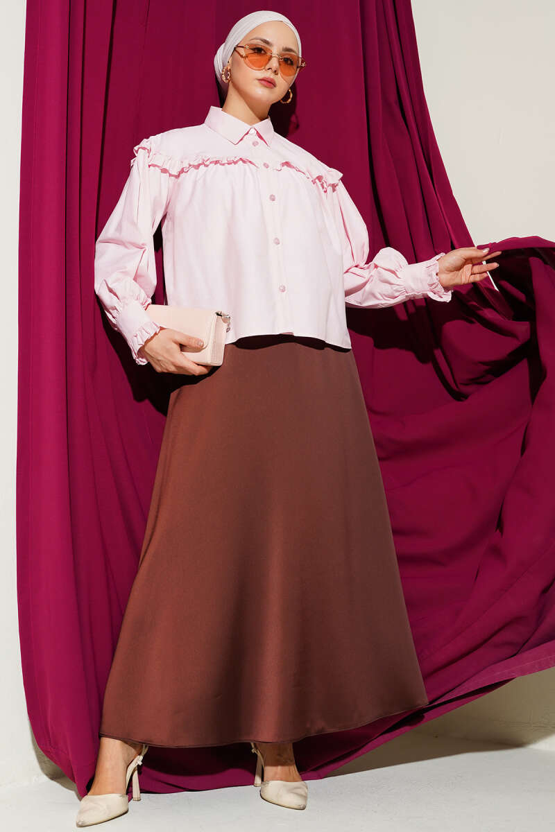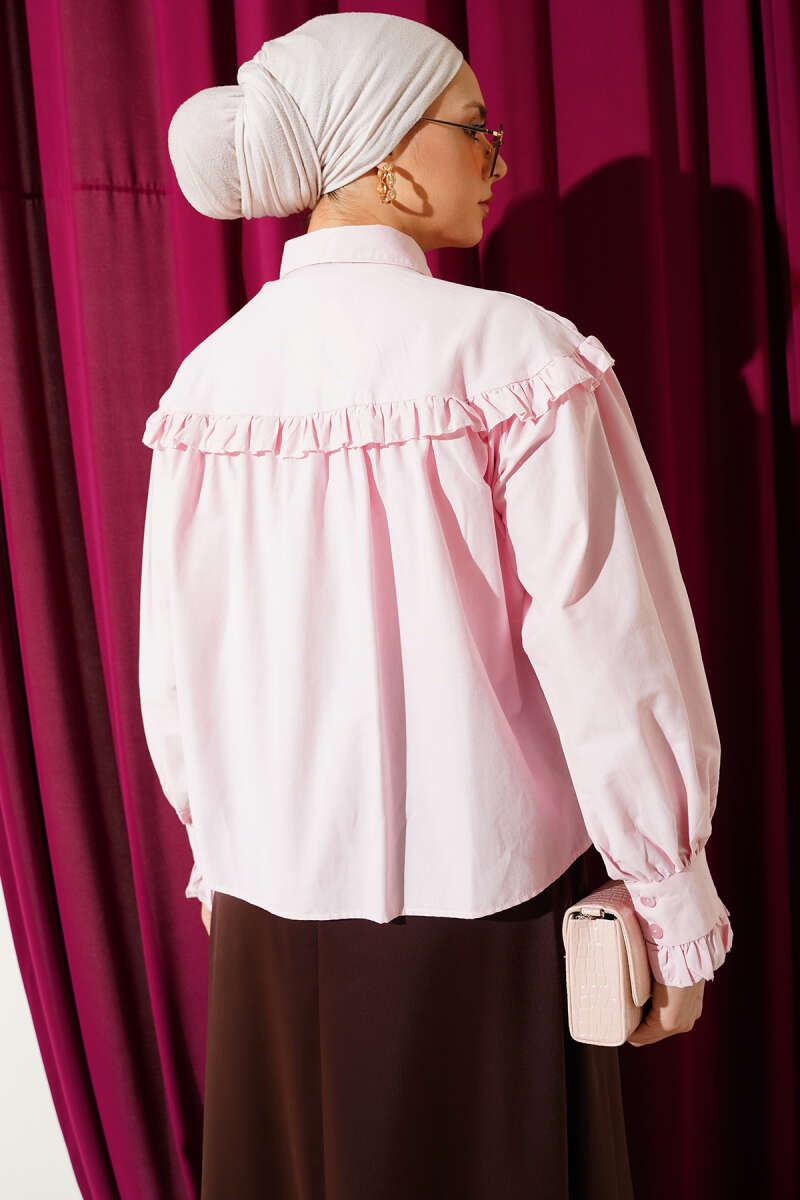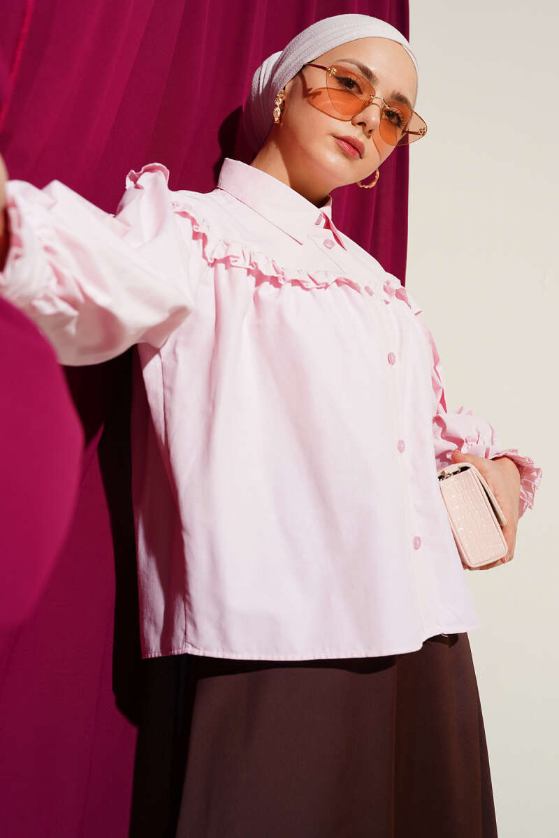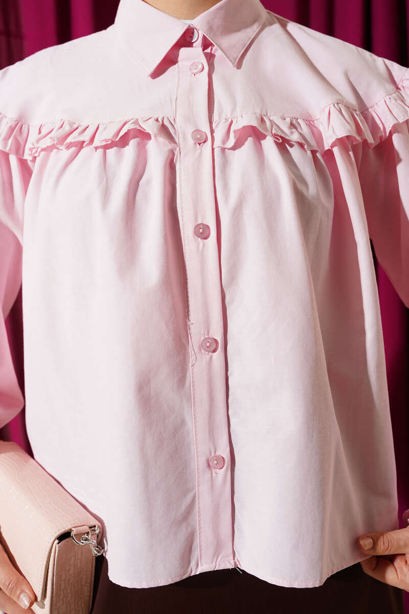 Fırfır Pelerinli İp Kuşaklı Gömlek Pembe