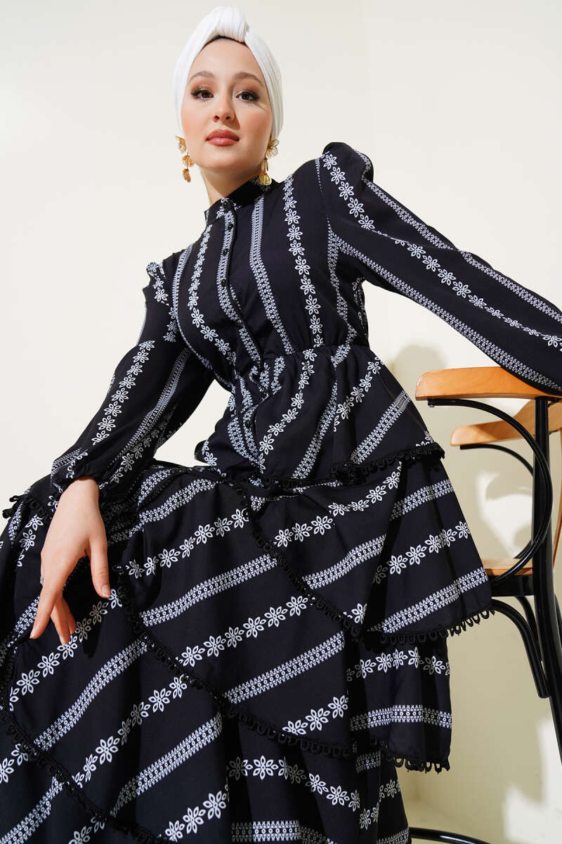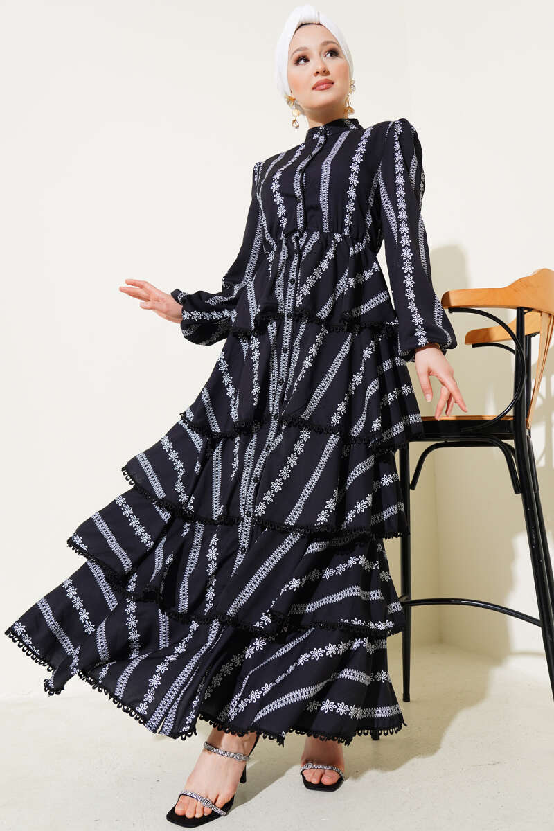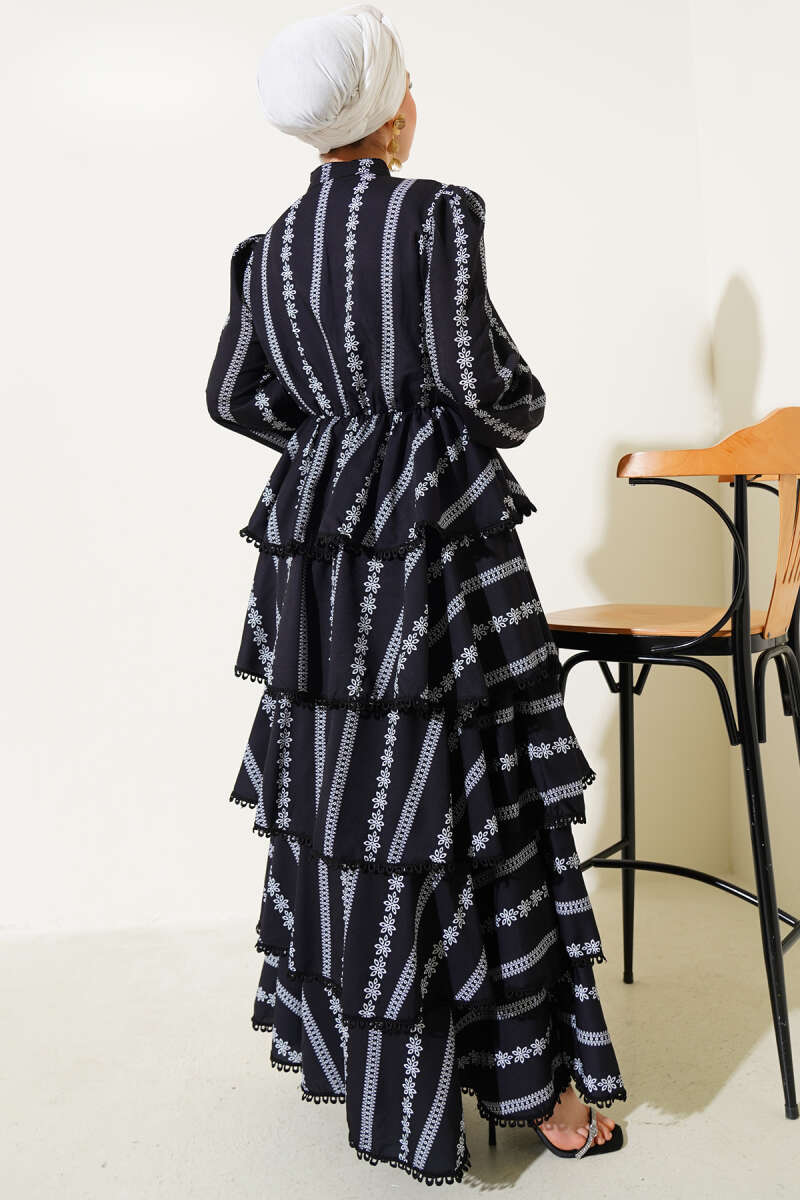 Omuz Pelerin Detaylı Abiye Elbise Siyah