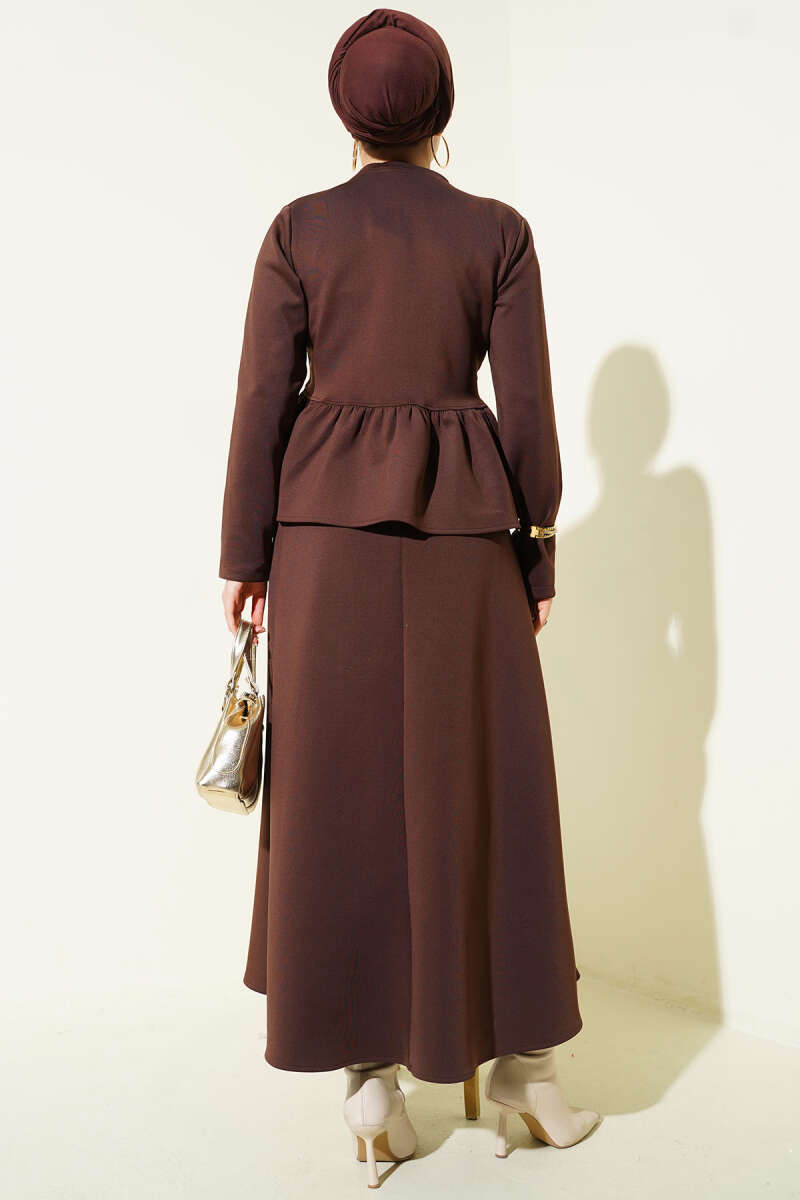 Yan Parça Bağlamalı Scuba İkili Takım Kahve
