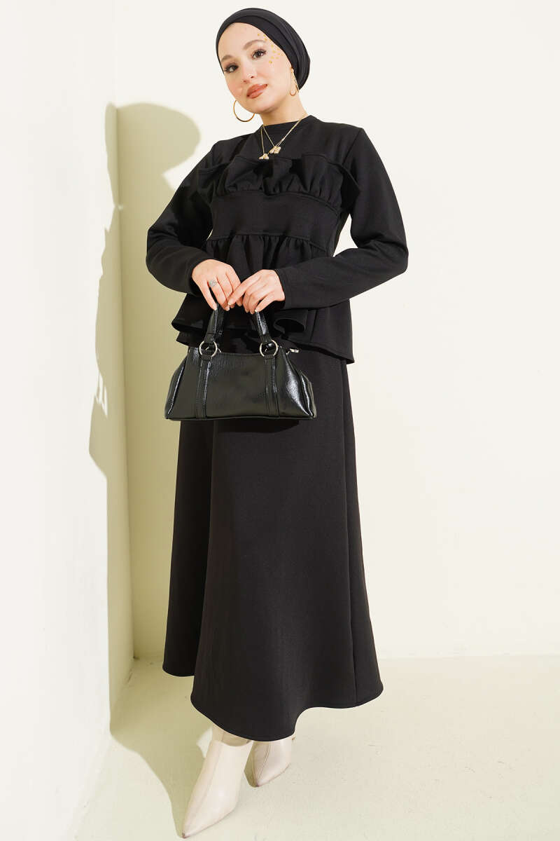 Yaka Kurdeleli Pul Payet İkili Takım Siyah