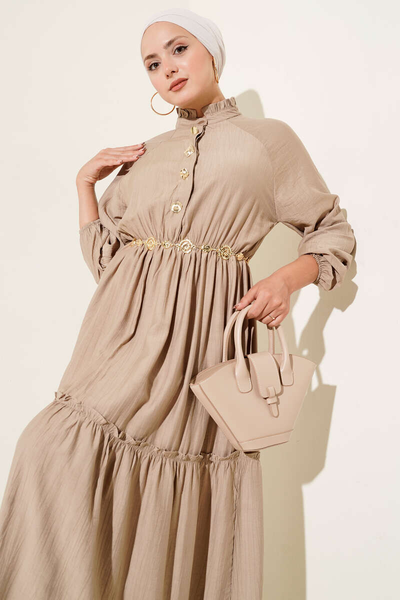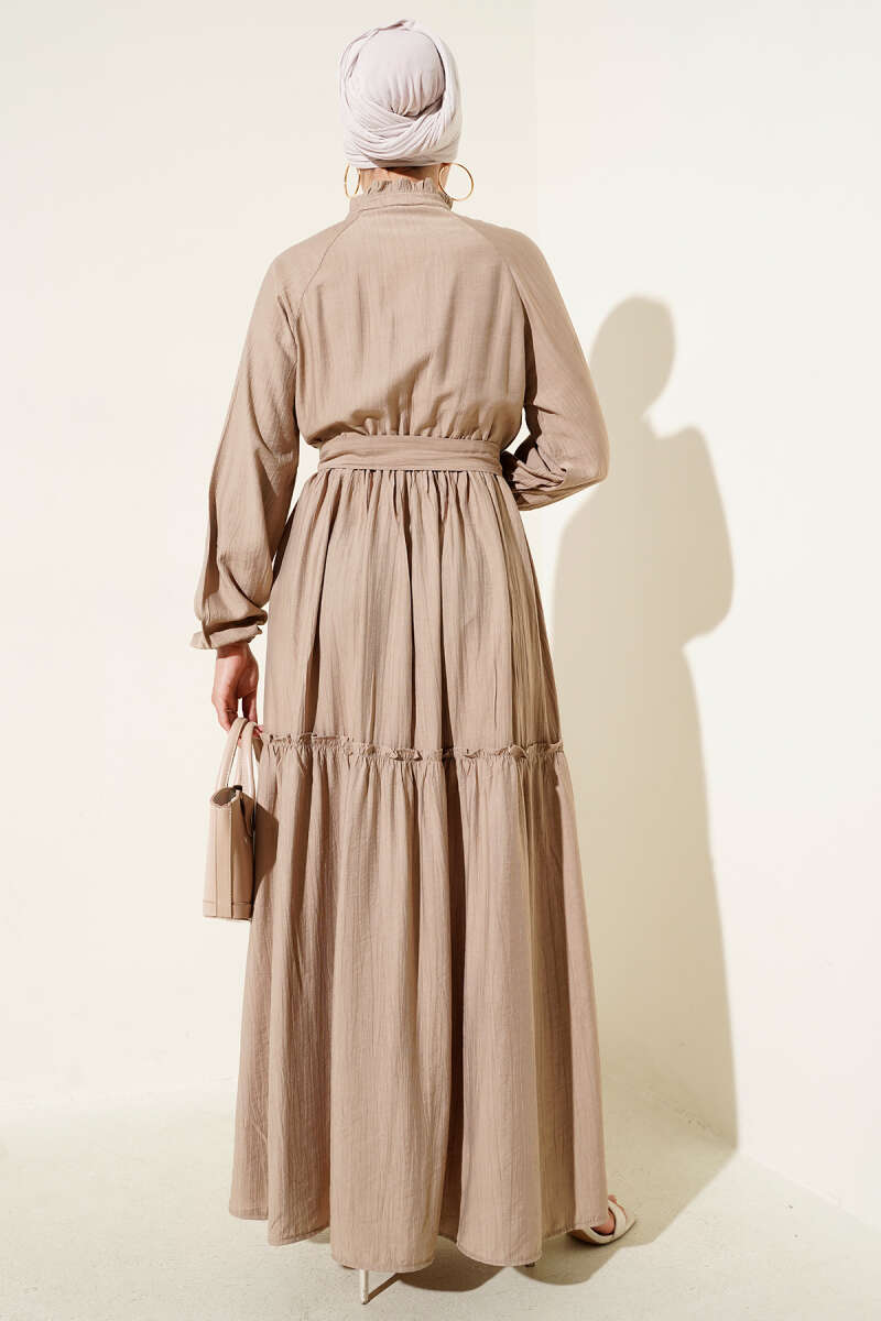 Pelerin Detaylı Pileli Triko Elbise Kahve