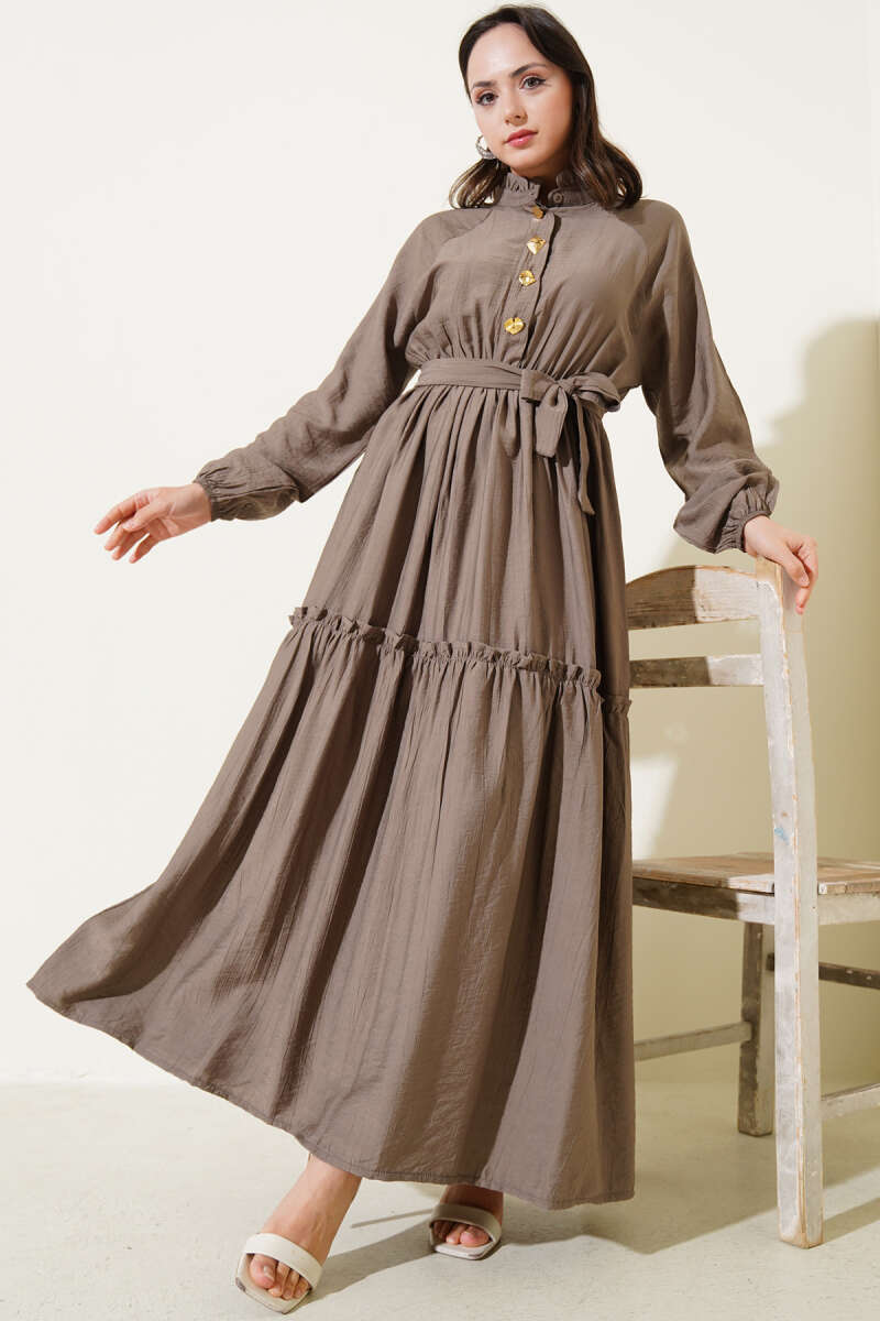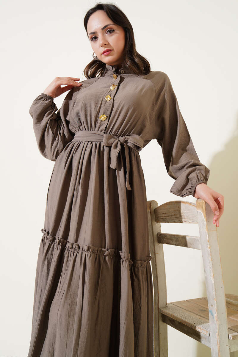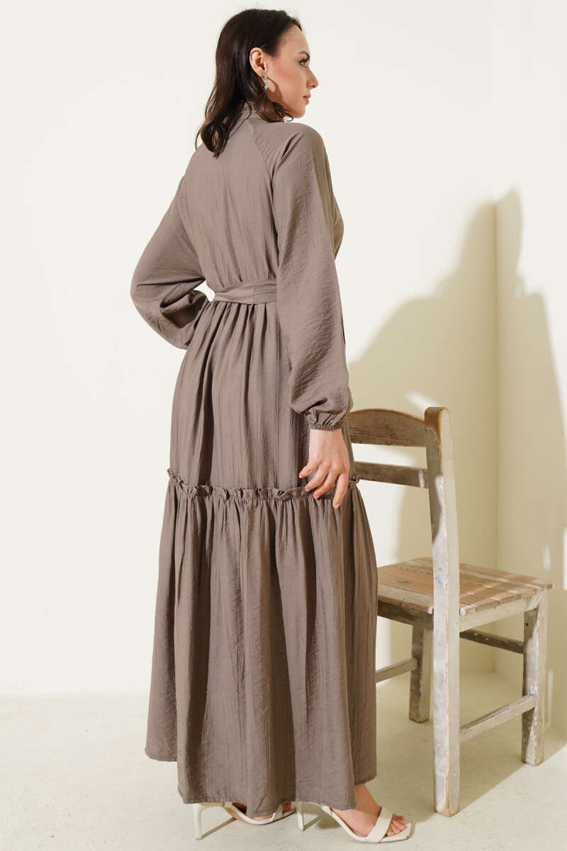 Pelerin Detaylı Pileli Triko Elbise Kahve