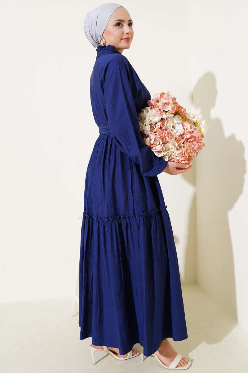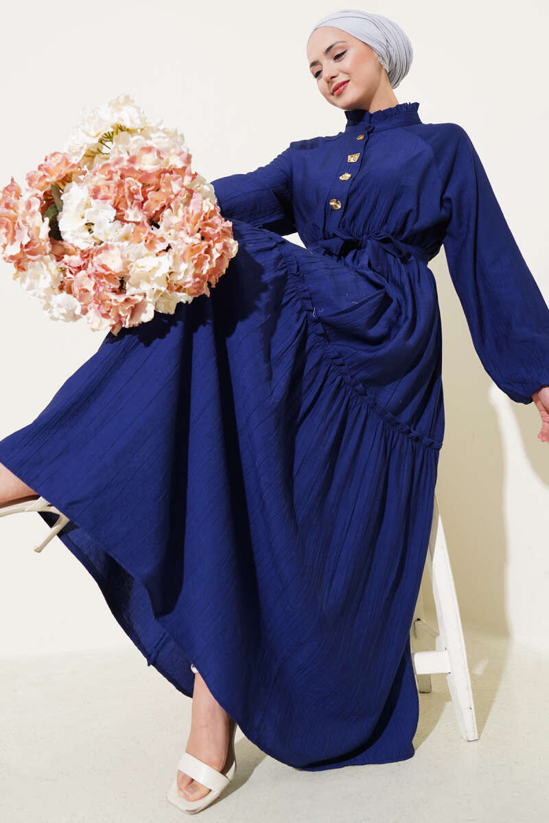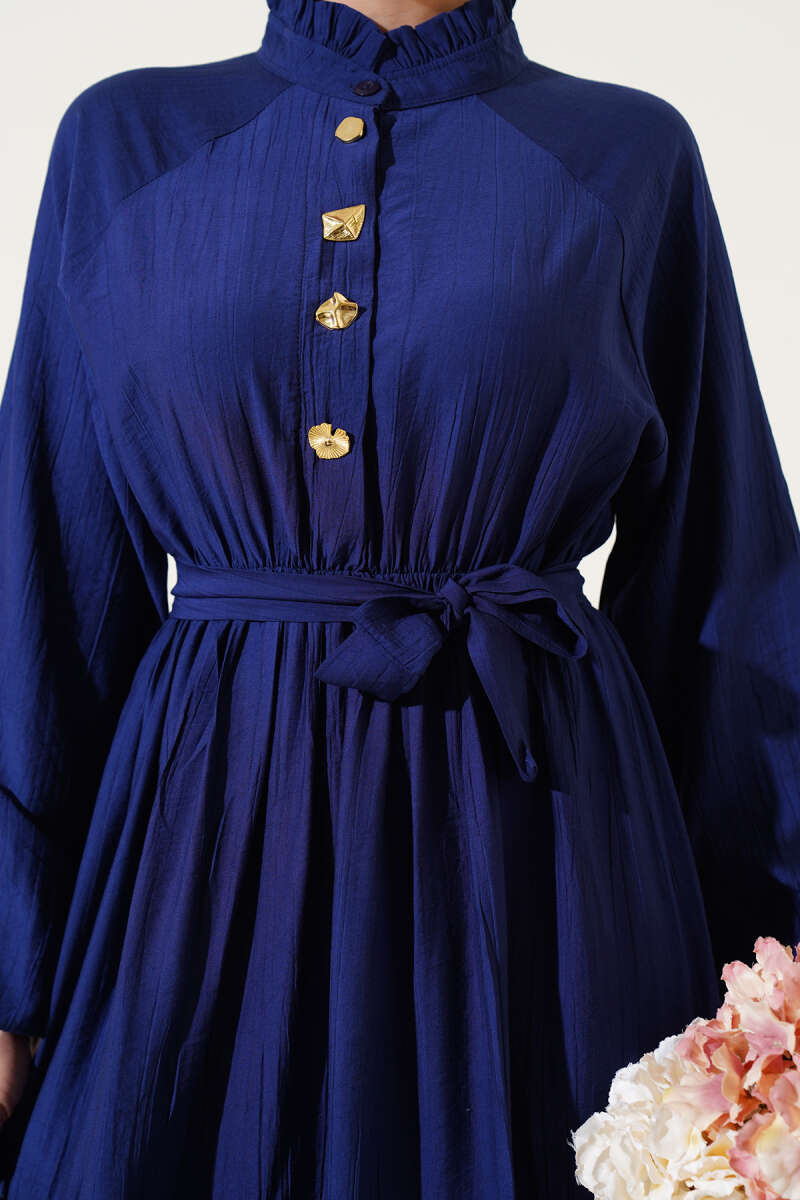 Gömlek Yaka Düğmeli Triko Elbise Lacivert
