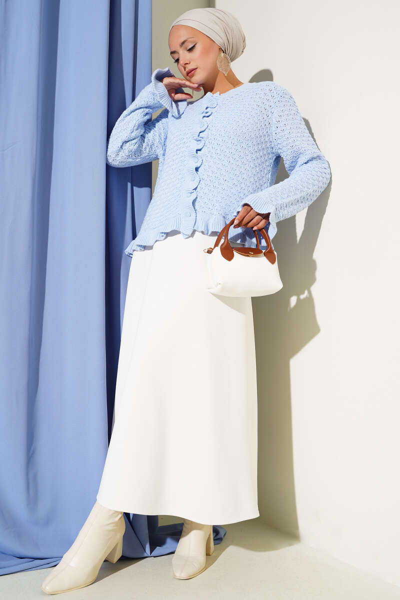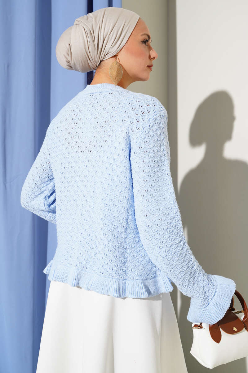 Fırfırlı Düğmeli Kısa Triko Hırka Mavi