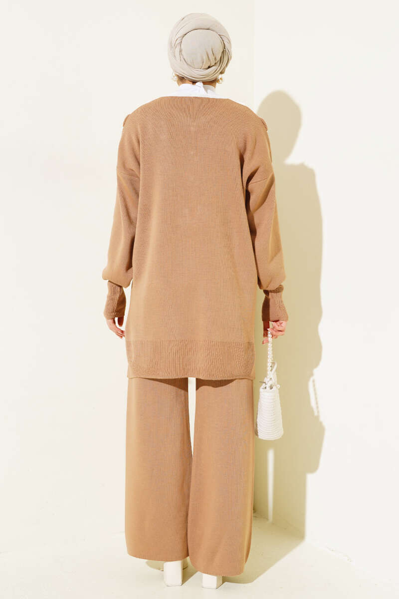Balon Kol Balıkçı Yaka Triko İkili Takım Kahve