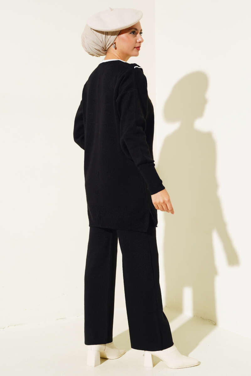 Dikiş Detaylı Basic Triko İkili Takım Siyah