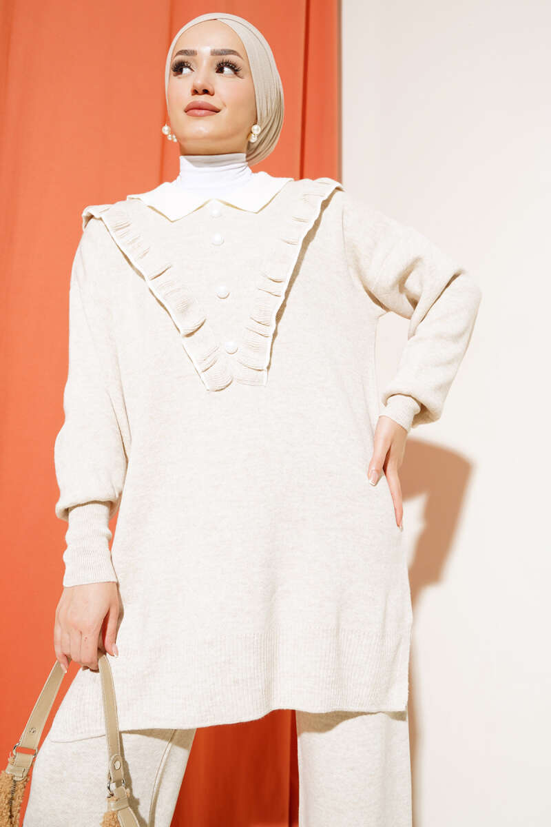 Balon Kol Balıkçı Yaka Triko İkili Takım Taş